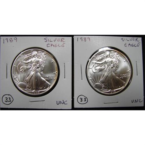 PAIR OF 1989 AMERICAN EAGLE SILVER DOLLARS. Unc.