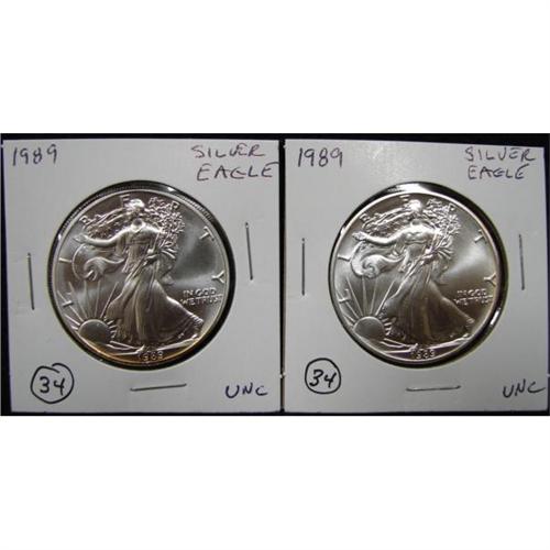 PAIR OF 1989 AMERICAN EAGLE SILVER DOLLARS. Unc.