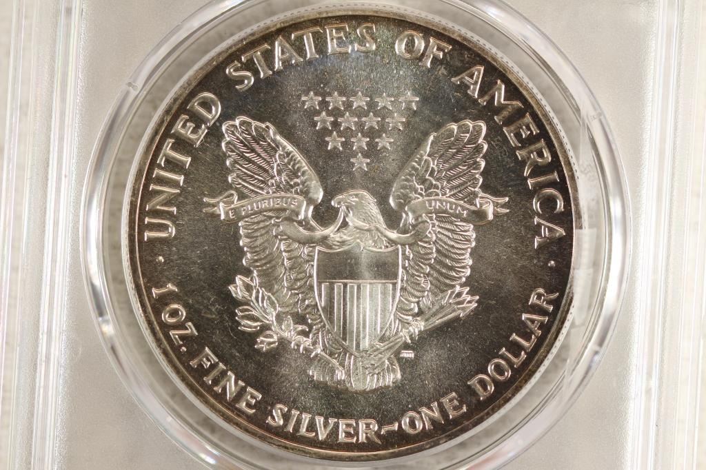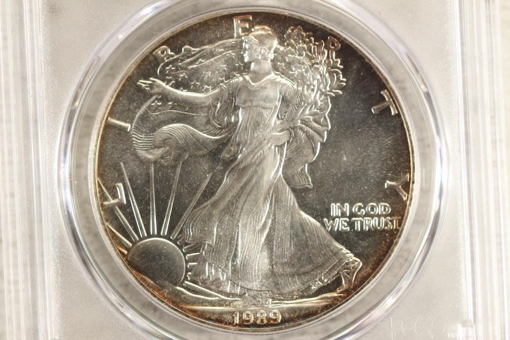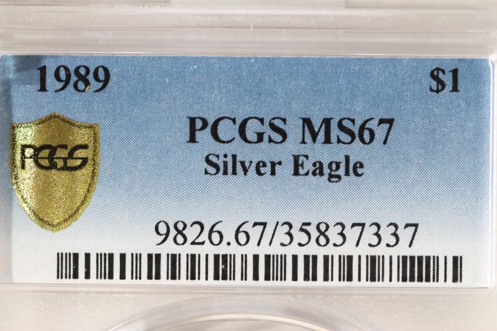 1989 AMERICAN SILVER EAGLE PCGS MS67 EDGE TONING