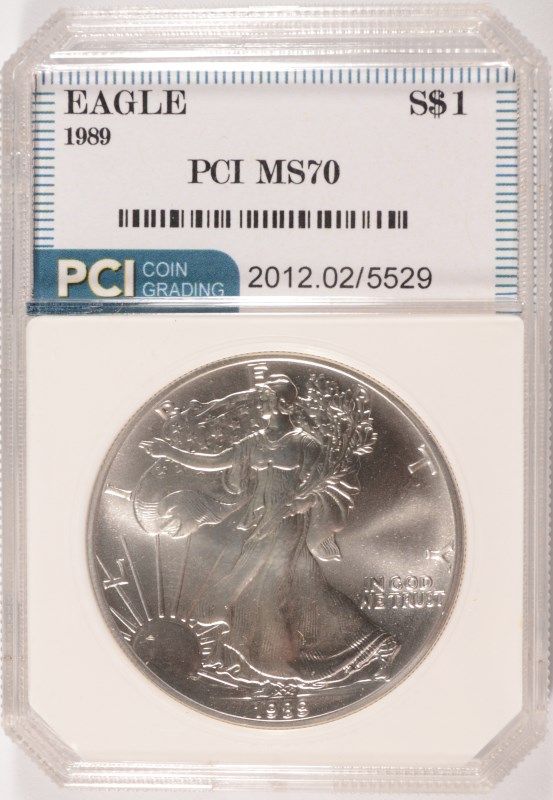 1989 AMERICAN SILVER EAGLE, PCI MS-70! RARE!! TRENDS $1660.00