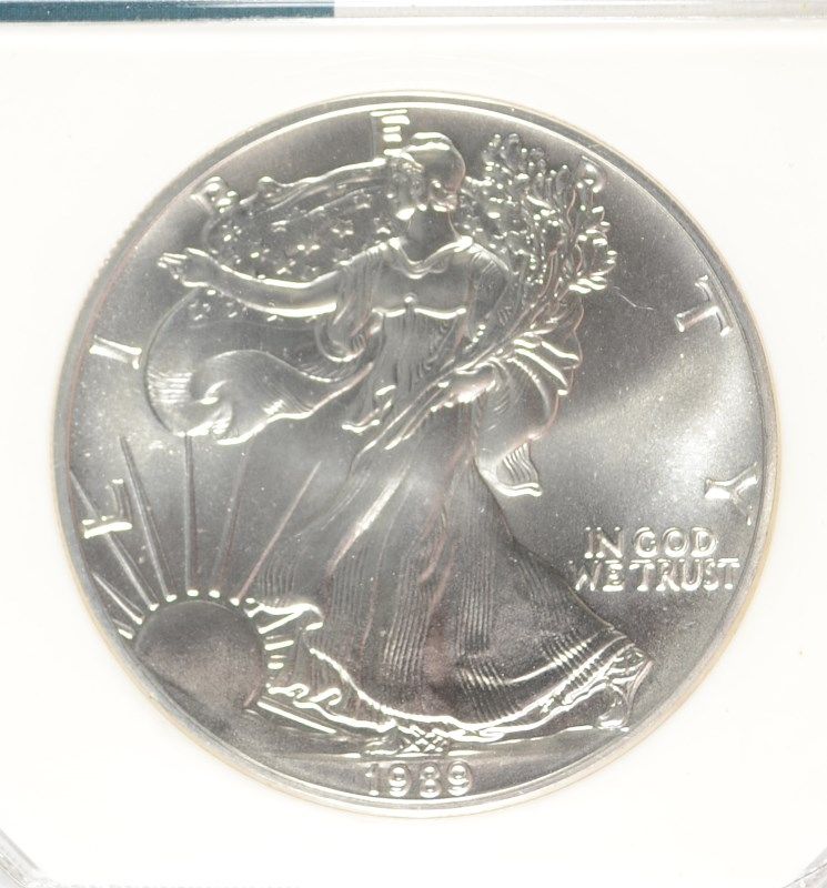 1989 AMERICAN SILVER EAGLE, PCI MS-70 RARE TRENDS PRICE $1600.00