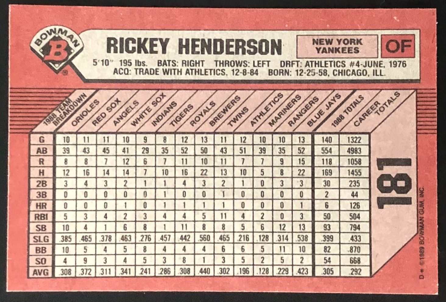 Card #181 MLB baseball, hall of fame, vintage
