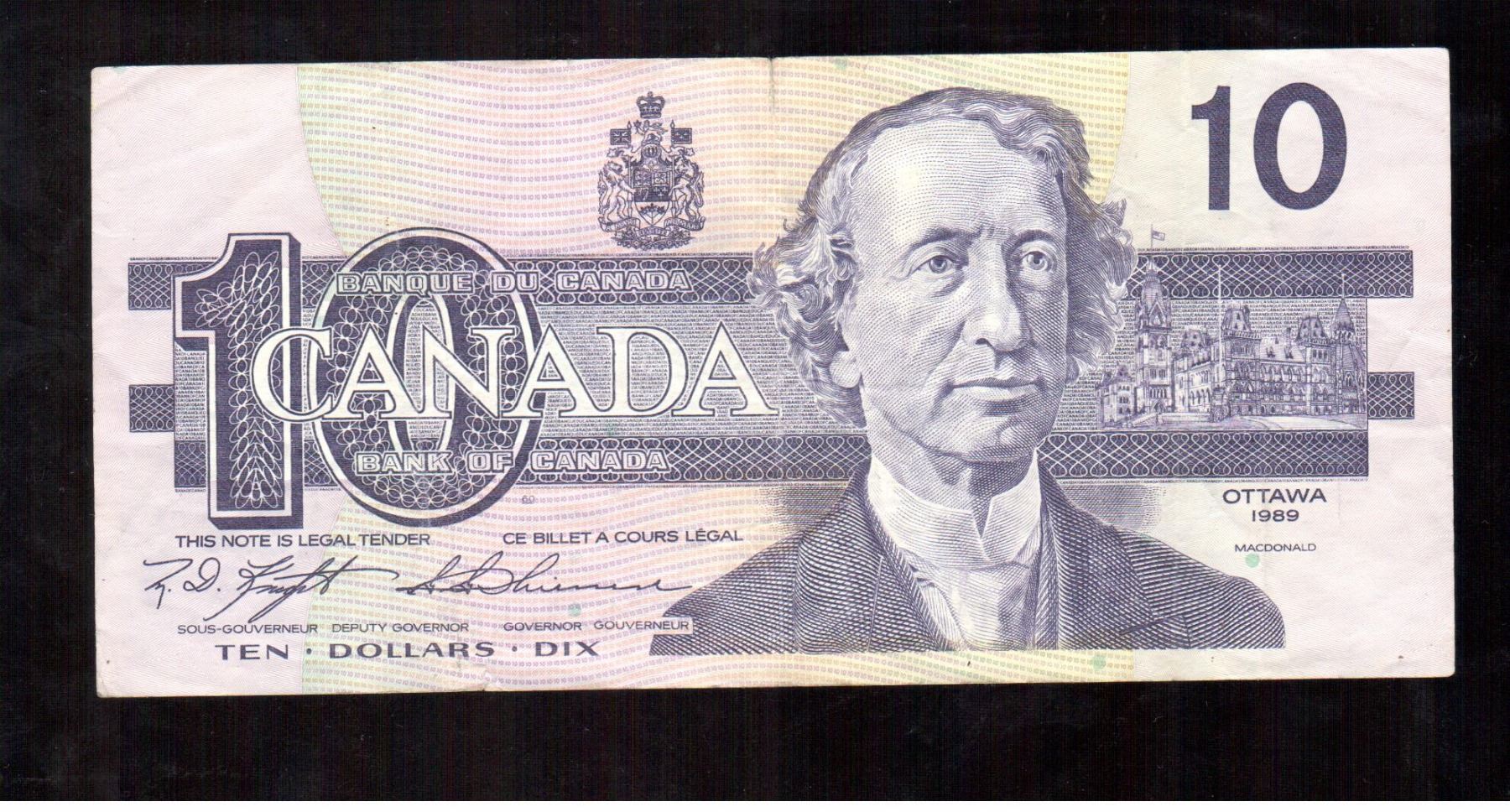 Lot 103; Dates include 1989, $10 note Knight-Thiessen BEG Prefix F-VF average grade