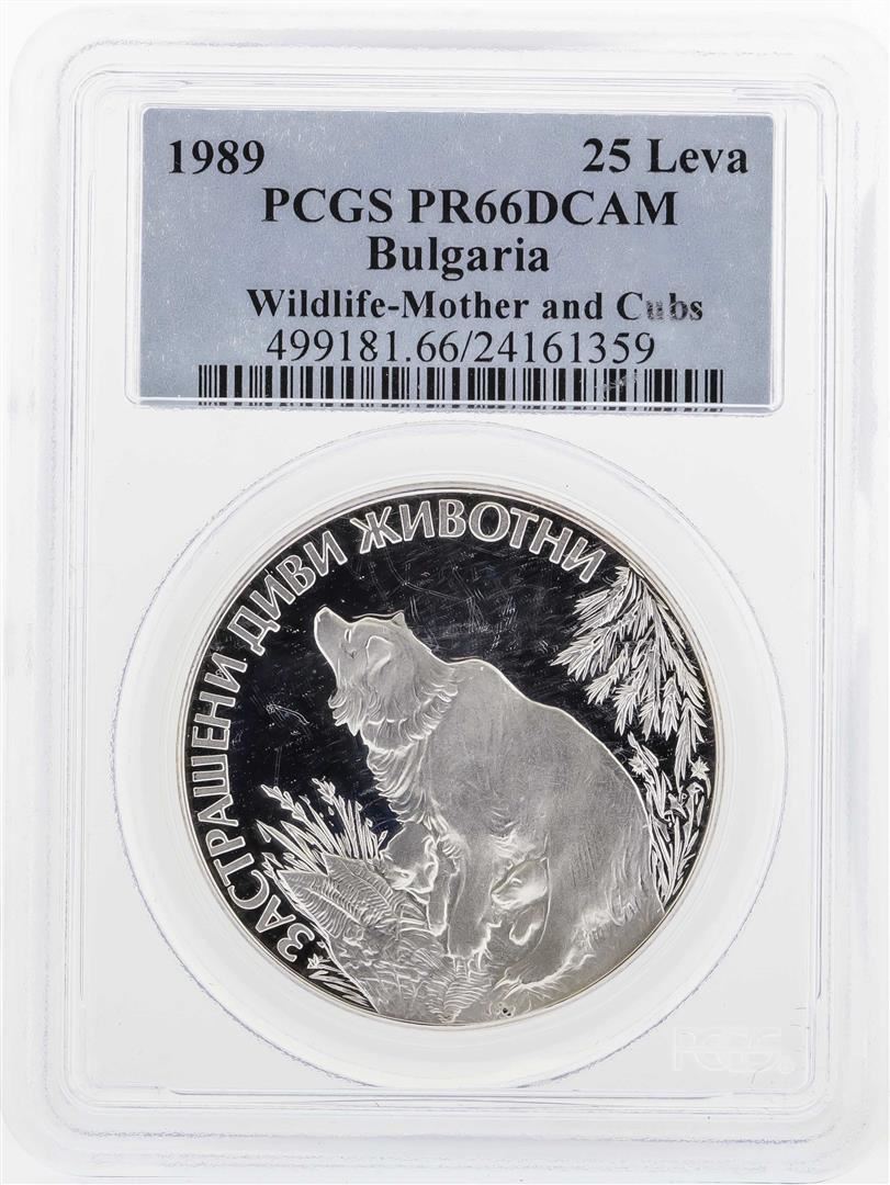 One 1989 Bulgaria 25 Leva Silver Coin PCGS PR66DCAM. PCGS Graded.