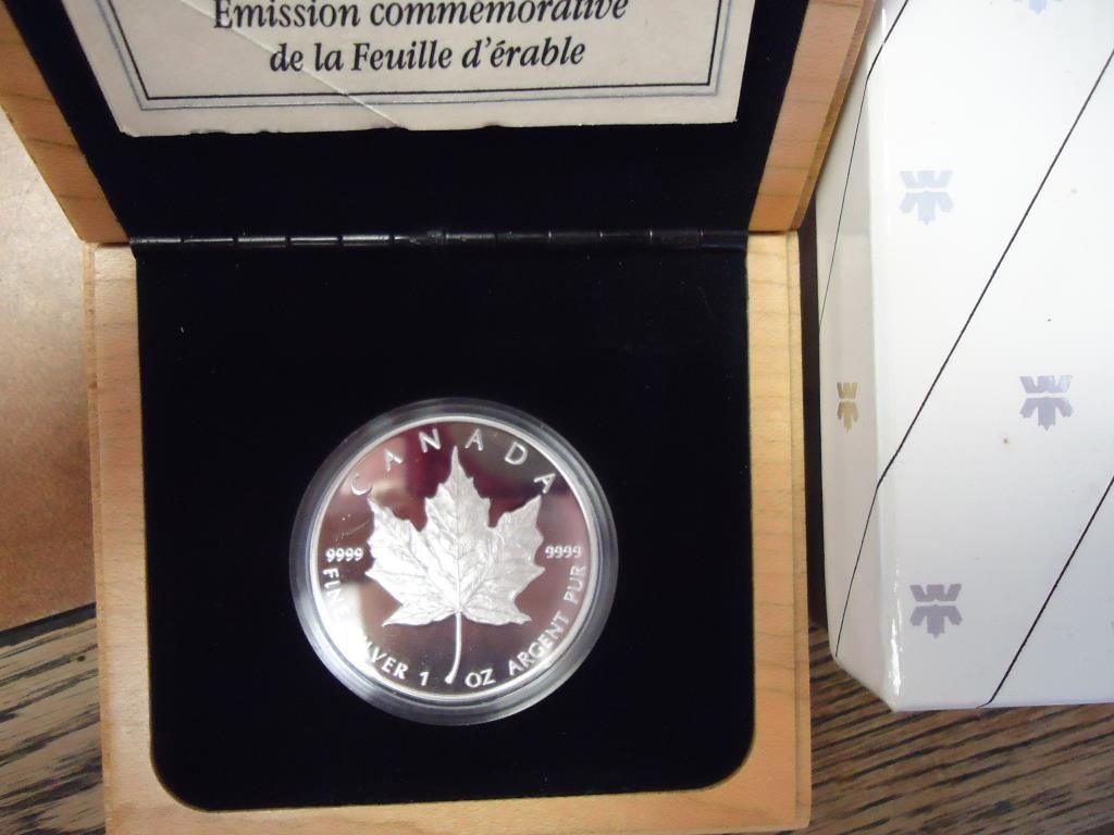 1 OUNCE .9999 FINE SILVER ORIGINAL ROYAL CANADIAN MINT PACKAGING. NICE WOOD BOX.