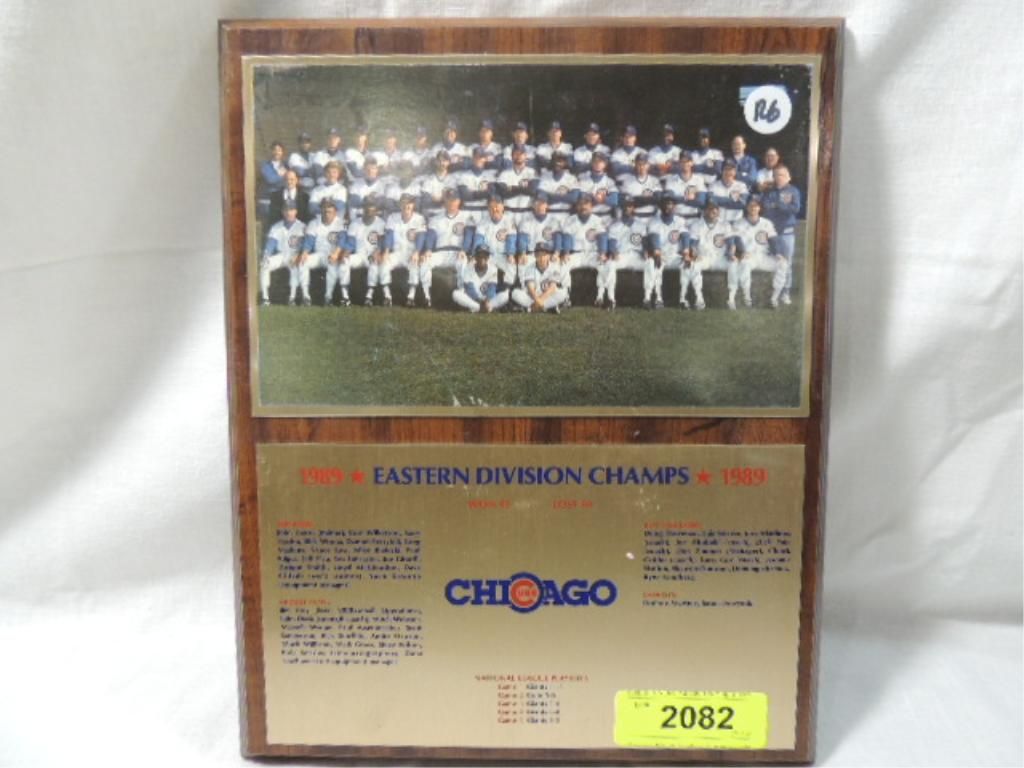 1989 CHICAGO CUBS EASTERN DIVISON CHAMPS. TEAM PHOTO ON PLAQUE. AS SHOWN. SEE PHOTO FOR DETAILS.