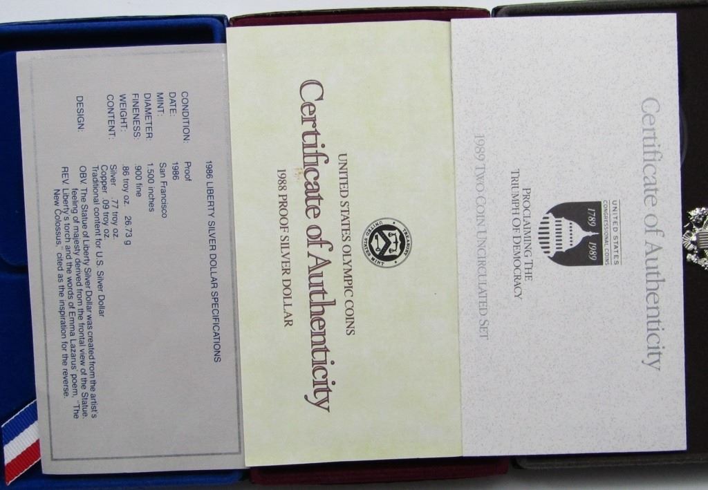 1988 PROOF OLYMPIC SILVER DOLLAR, 1986 PROOF STATUE OF LIBERTY SILVER DOLLAR - ORIGINAL. Live Online Auctions Weekly!