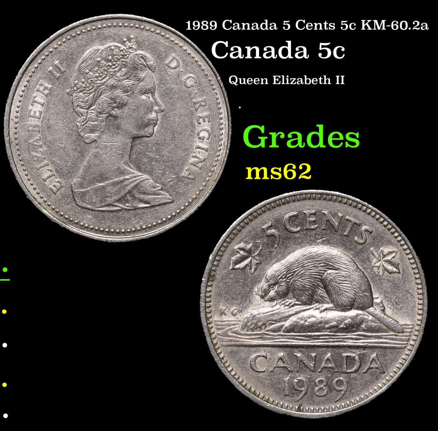 1989 Canada 5 Cents 5c KM-60.2a Grades Select Unc. Elizabeth was born in Mayfair, London, as the first child of the Duke and Duchess of York (later King George VI and Queen Elizabeth). Her father acceded to the throne in 1936 upon the abdication of his brother, King Edward VIII, making Elizabeth the heir presumptive. She was educated privately at home and began to undertake public duties during the Second World War, serving in the Auxiliary Territorial Service. In November 1947, she married Philip Mountbatten, a former prince of Greece and Denmark, and their marriage lasted 73 years until Philip's death in 2021. They had four children: Charles, Prince of Wales; Anne, Princess Royal; Prince Andrew, Duke of York; and Prince Edward, Earl of Wessex.When her father died in February 1952, Elizabeth—then 25 years old—became queen regnant of seven independent Commonwealth countries: the United Kingdom, Canada, Australia, New Zealand, South Africa, Pakistan, and Ceylon, as well as Head of the Commonwealth. Elizabeth has reigned as a constitutional monarch through major political changes such as the Troubles in Northern Ireland, devolution in the United Kingdom, the decolonisation of Africa, and the United Kingdom's accession to the European Communities and withdrawal from the European Union. The number of her realms has varied over time as territories have gained independence, and as some realms have become republics. Her many historic visits and meetings include state visits to the People's Republic of China in 1986, the Russian Federation in 1994, the Republic of Ireland in 2011, and visits to or from five popes.Significant events have included Elizabeth's coronation in 1953 and the celebrations of her Silver, Golden, Diamond and Platinum jubilees in 1977, 2002, 2012, and 2022, respectively. Elizabeth is the longest-lived and longest-reigning British monarch, the oldest and longest-serving incumbent head of state, and the second-longest reigning sovereign monarch in world history. She has faced occasional republican sentiment and press criticism of the royal family, particularly after the breakdown of her children's marriages, her annus horribilis in 1992, and the death in 1997 of her former daughter-in-law Diana, Princess of Wales. However, support for the monarchy in the United Kingdom has been and remains high, as does her personal popularity. Elizabeth died aged 96 at Balmoral Castle, Aberdeenshire, and was succeeded by her eldest son, Charles III.