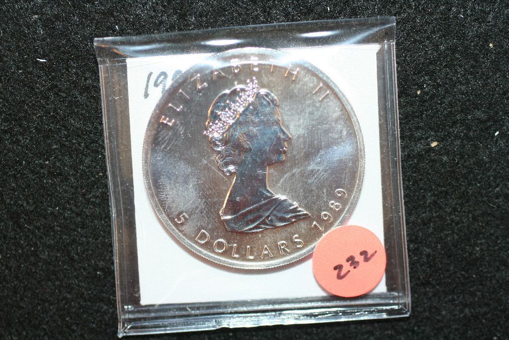 1989 Canada $5 Foreign Coin, Mapleleaf, 9999 Fine Silver 1 Oz.