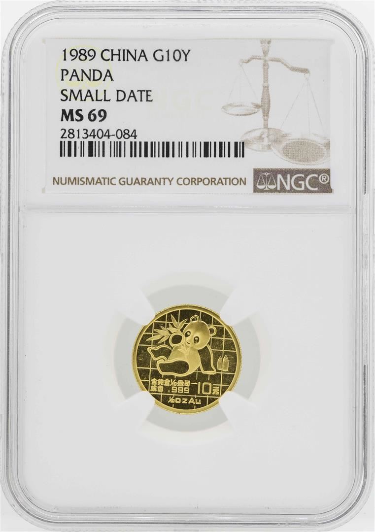 One 1989 China 10 Yuan 1/10 Oz. Gold Panda Coin NGC MS69 Small Date. NGC Certified.