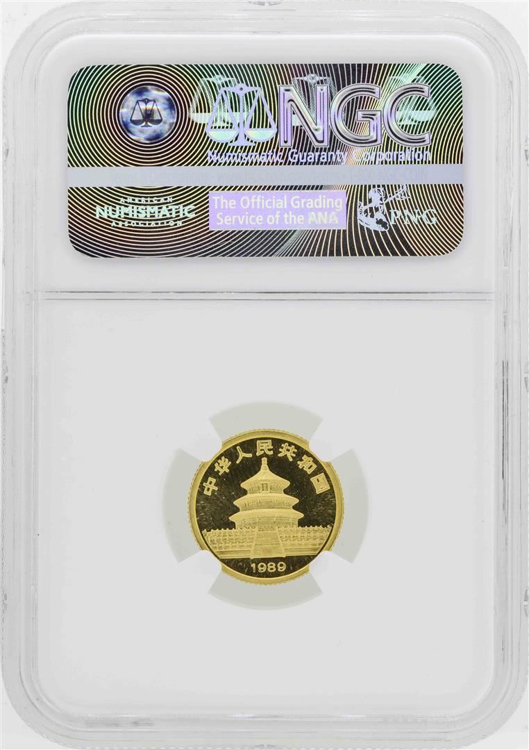 1989 China 10 Yuan 1/10 Oz. Gold Panda Coin NGC MS69 Small Date