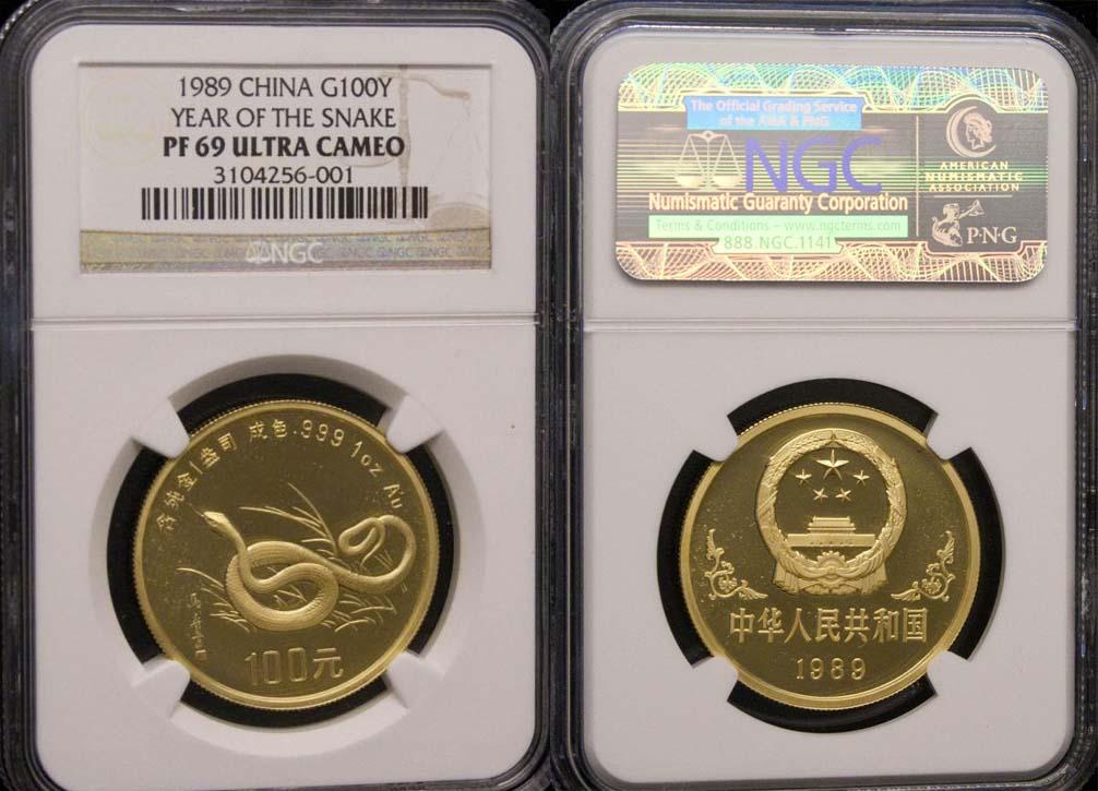 1989 Chinese Gold 100 Yuan Coin -- Year of the Snake -- NGC Graded PF69 Ultra Cameo -- Without OGP