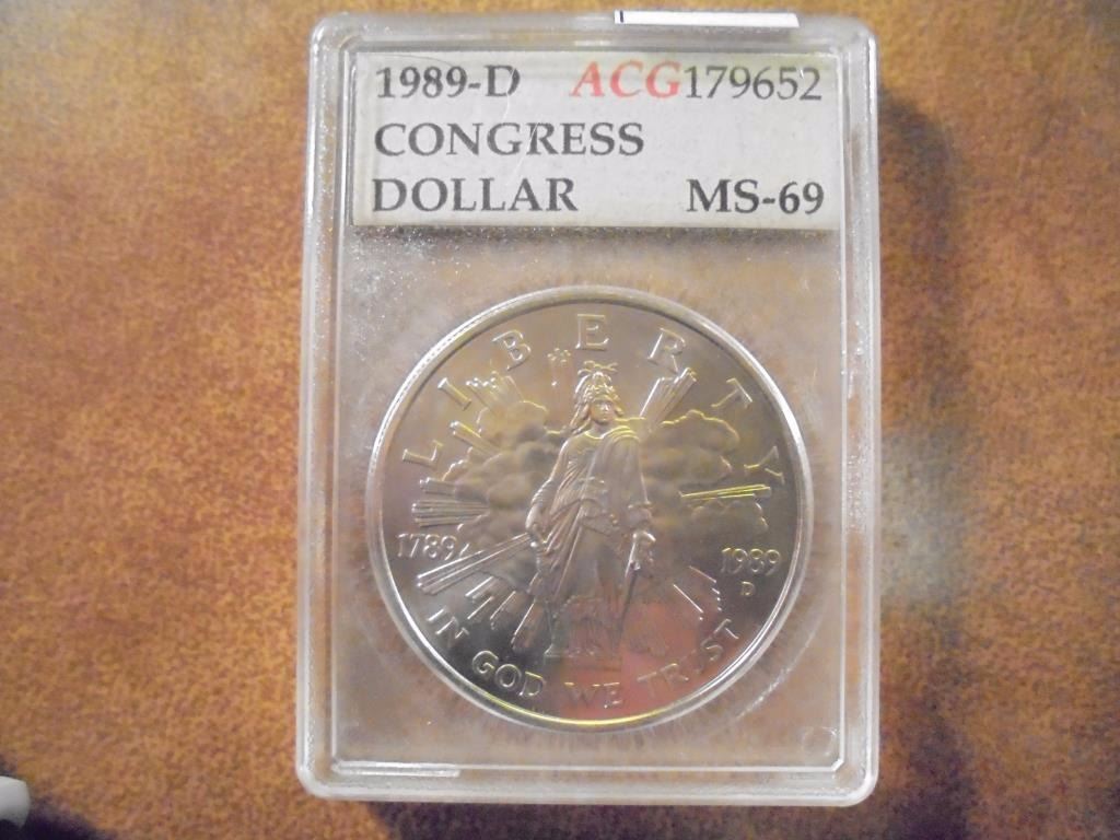 1989-D CONGRESS SILVER DOLLAR ACG MS69