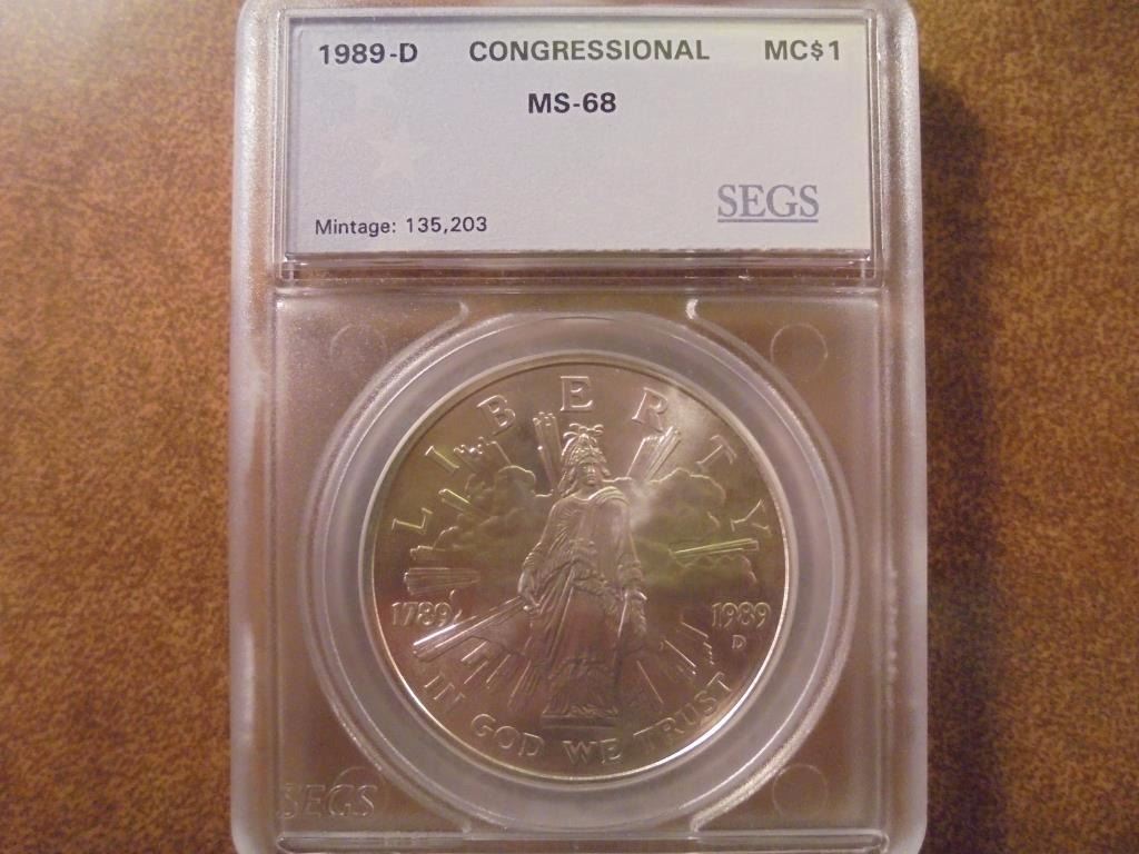 1989-D CONGRESSIONAL SILVER DOLLAR SEGS SLAB