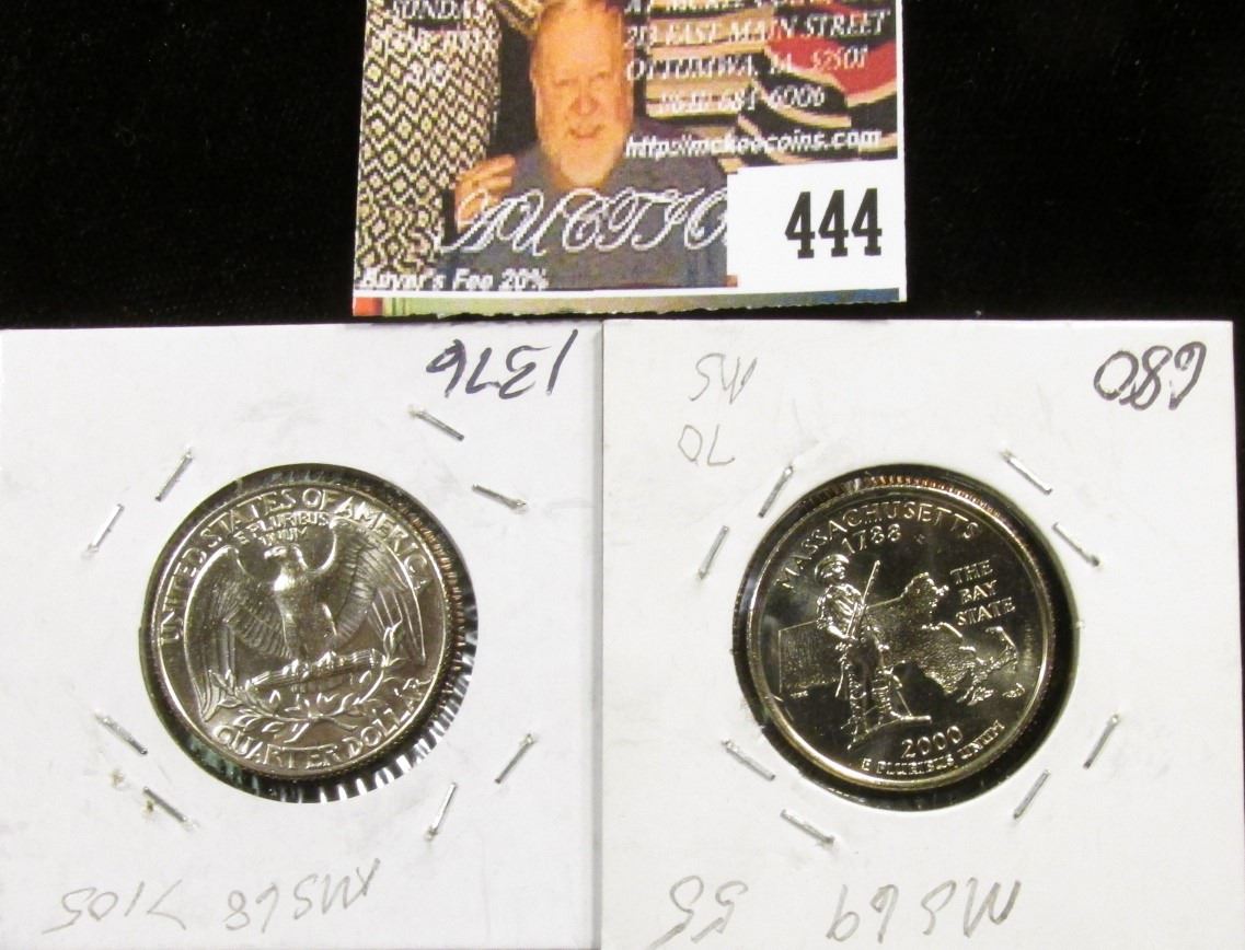 1989 D MS68 & 2000 P MS69 Massachusetts Statehood Quarters.