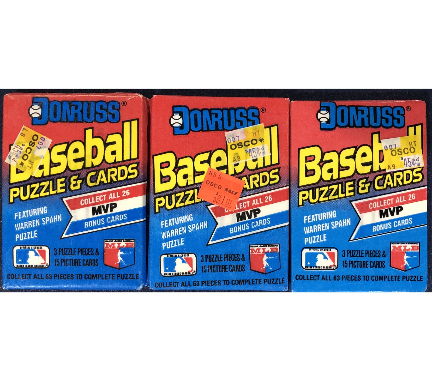 Three sealed packs, each containing 15 cards & 3 puzzle pieces MLB, baseball