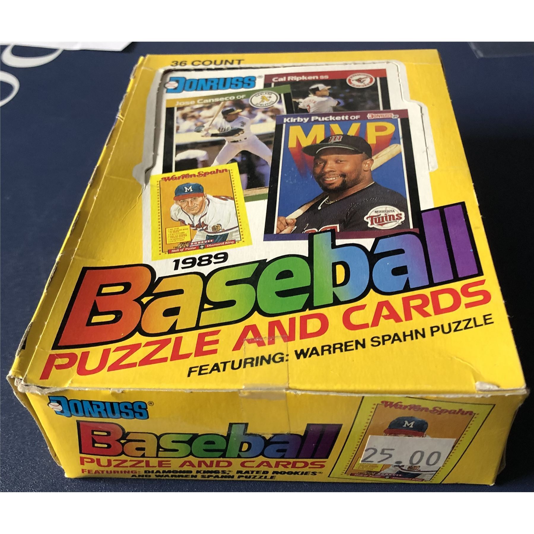 36 packs, each with 10 cards, puzzle pieces & MVP bonus cards. 1989 set features rookie cards of Ken Griffey Jr., Randy Johnson, Gary Sheffield, John Smoltz, Curt Schilling & Craig Biggio.
