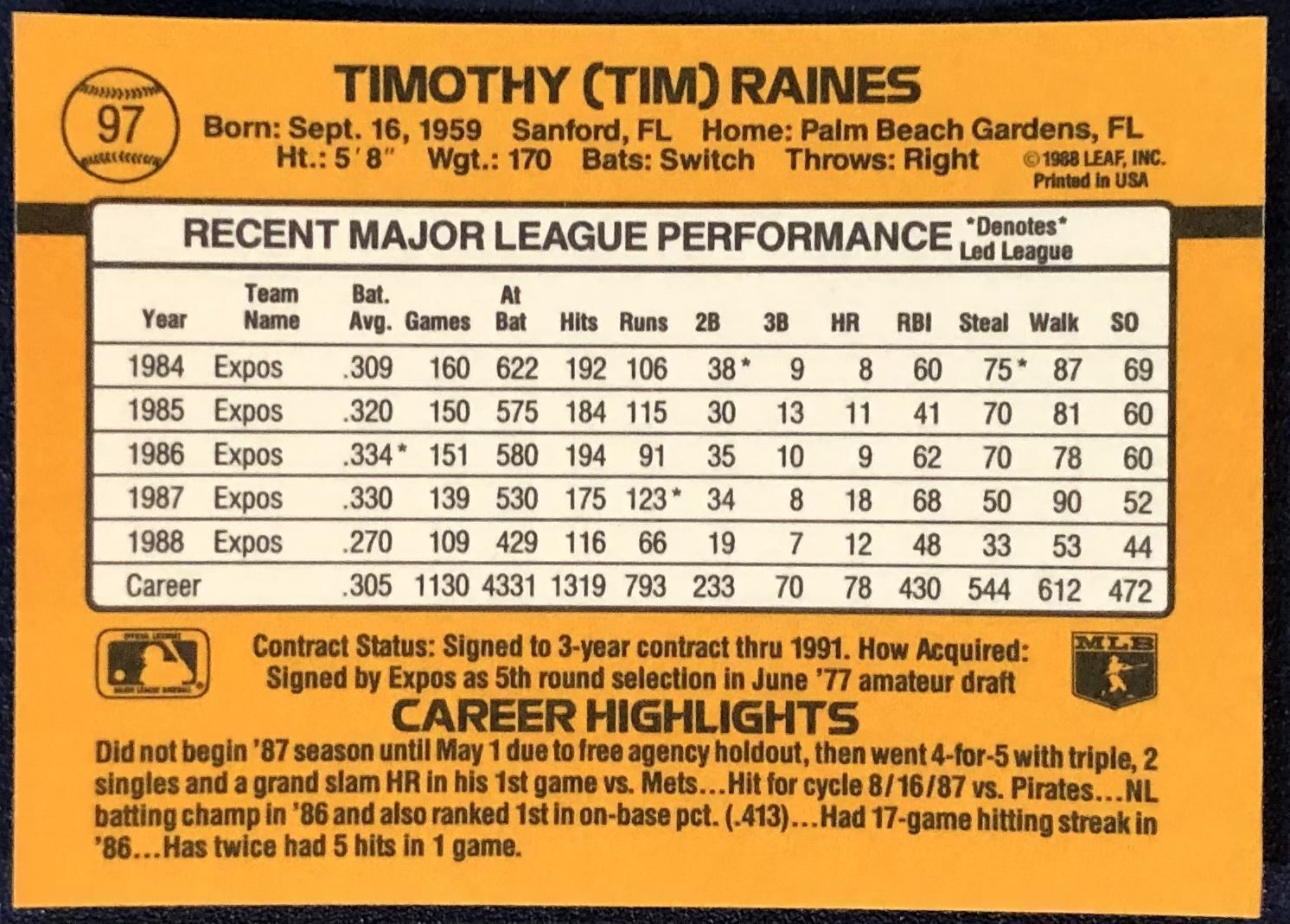 Card #97 MLB, baseball, hall of fame