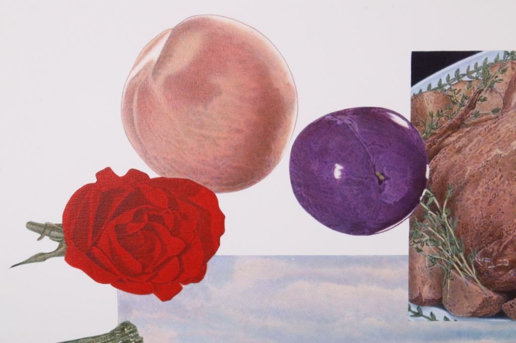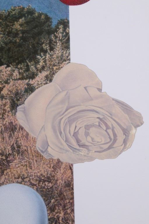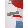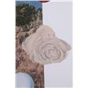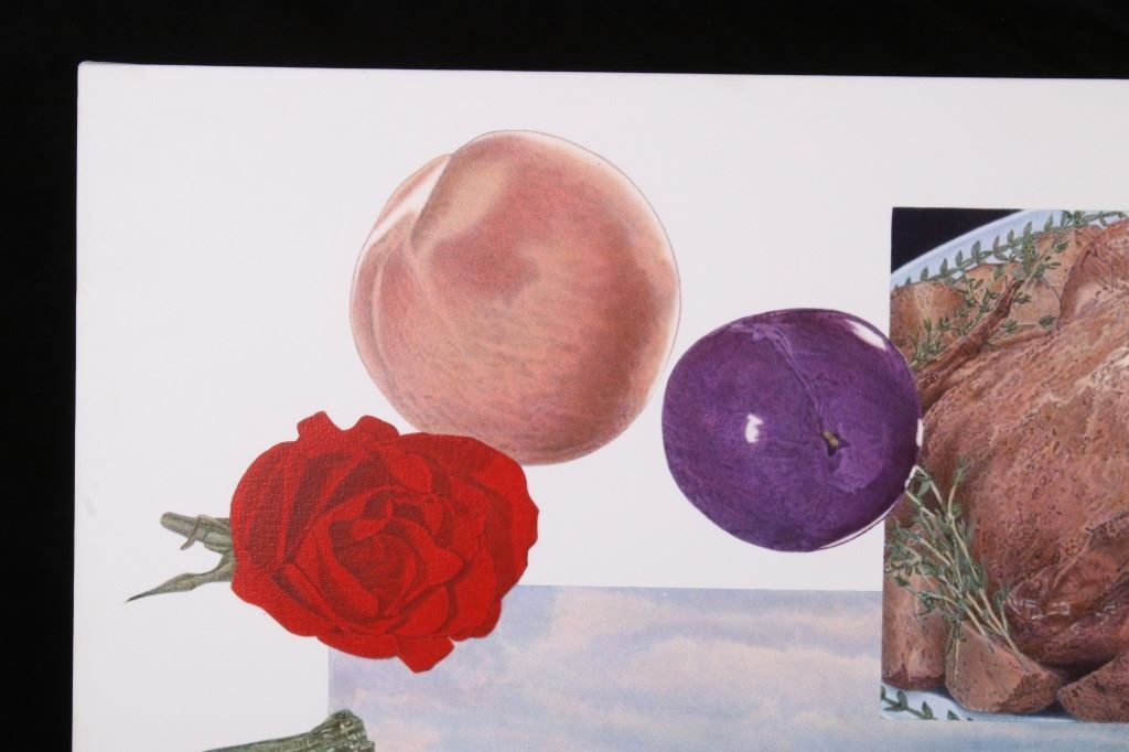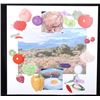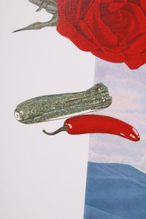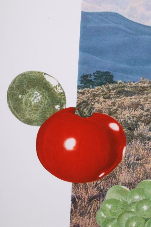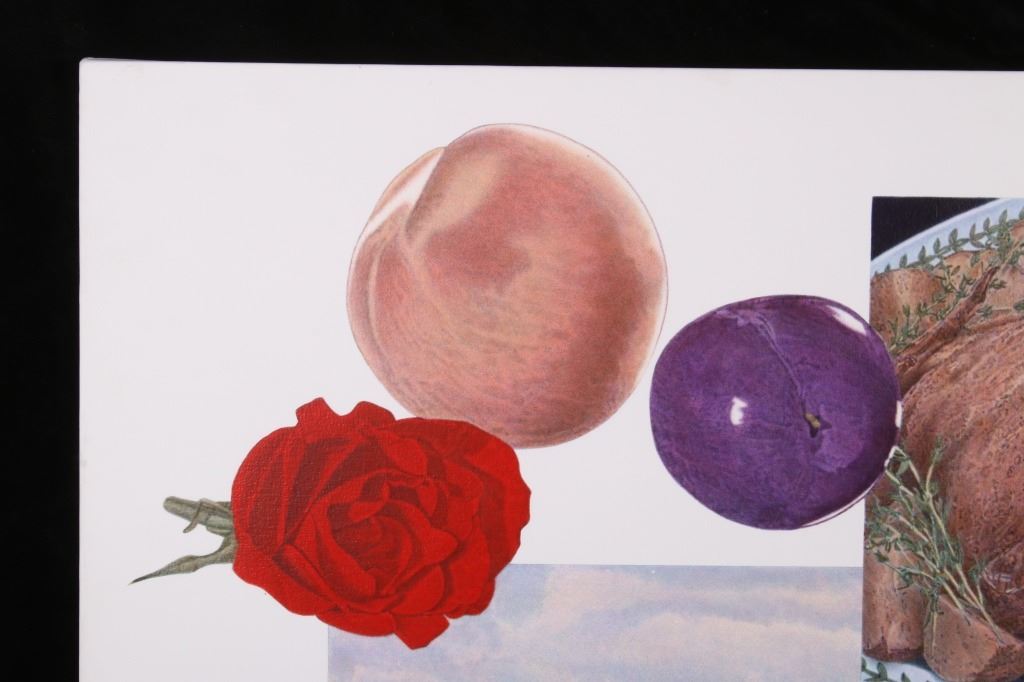 For your bidding pleasure is this Acrylic painting on canvas called Memory and Imagination by Don Eddy from 1989. Done Eddy was considered one of the first Photo Realist artists however has his recent work delves into the realm of metaphysics. This is a wonderful acrylic on canvas painting, showing different kinds of food all surrounding a picturesque view of the high desert. The condition of this painting is good with no obvious signs of damage, showing slight surface dirt along the border. The measurements of this painting are 80" x 80" framed canvas.