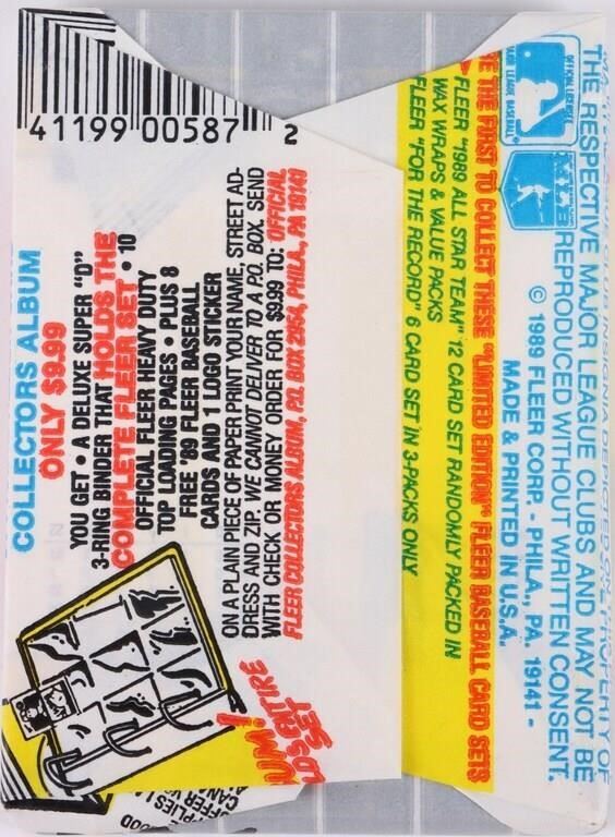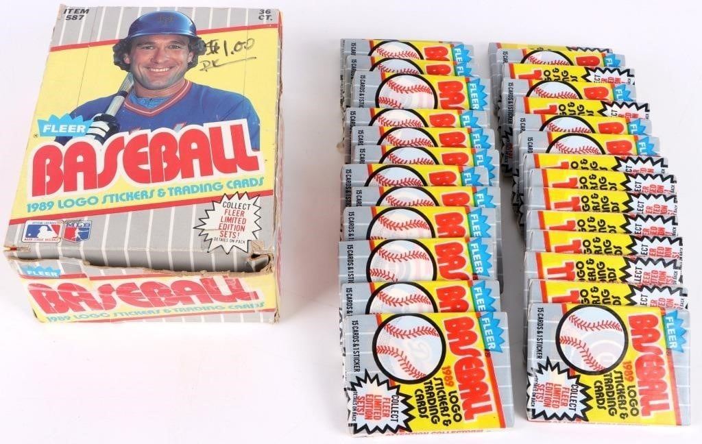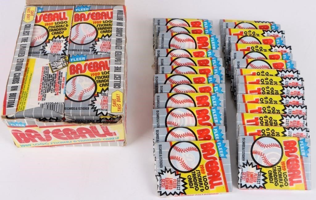 1989 Fleer Baseball cards sealed packs lot of 65. Each sealed pack contains 15 cards and 1 logo sticker.
