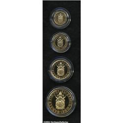 <B>1989 Four-piece Gold Proof Set consisting of:</B></I> 1/2 Sovereign, Sovereign, 2 Pounds, and 5 Pounds, KM-PS60. Housed in the original case of issue, with certificate. <BR><BR><B>Important notice:</B> Heritage usually auctions material at the rate of 200-250 lots per hour. On some occasions eBay Live bid software or the Internet may not be able to keep up with the pace of the auction. We recommend placing a realistic absentee bid now as insurance to avoid disappointment. Occasionally the auctioneer may eliminate or reject an eBay Live bid, and the auctioneer may also reopen a lot after the close of the eBay live bidding (usually because we missed an audience bid), and may reject your bid even if it shows you as the winning bidder. By bidding via eBay Live, you agree that Heritage may award the lot to another bidder at its sole discretion under the circumstances described above or any other reasonable circumstances. Since eBay bids are not shown to us until we open the lot on the floor, we treat those bids just like floor bids. In most cases the floor responds before the eBay bid is presented to us, due to Internet lag time, so for consistency we have made it a policy that floor bids are always considered first over tie eBay live bids. Also please note that all Heritage lots purchased through eBay Live carry a 20% Buyer's Premium. Please make sure you read the Terms and Conditions before you bid.