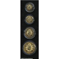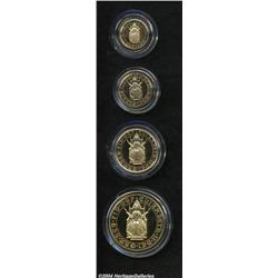 <B>1989 Four-piece Gold Proof Set consisting of:</B></I> 1/2 Sovereign, Sovereign, 2 Pounds, and 5 Pounds, KM-PS60. Housed in the original case of issue, with certificate. <BR><BR><B>Important notice:</B> Heritage usually auctions material at the rate of 200-250 lots per hour. On some occasions eBay Live bid software or the Internet may not be able to keep up with the pace of the auction. We recommend placing a realistic absentee bid now as insurance to avoid disappointment. Occasionally the auctioneer may eliminate or reject an eBay Live bid, and the auctioneer may also reopen a lot after the close of the eBay live bidding (usually because we missed an audience bid), and may reject your bid even if it shows you as the winning bidder. By bidding via eBay Live, you agree that Heritage may award the lot to another bidder at its sole discretion under the circumstances described above or any other reasonable circumstances. Since eBay bids are not shown to us until we open the lot on the floor, we treat those bids just like floor bids. In most cases the floor responds before the eBay bid is presented to us, due to Internet lag time, so for consistency we have made it a policy that floor bids are always considered first over tie eBay live bids. Also please note that all Heritage lots purchased through eBay Live carry a 20% Buyer's Premium. Please make sure you read the Terms and Conditions before you bid.
