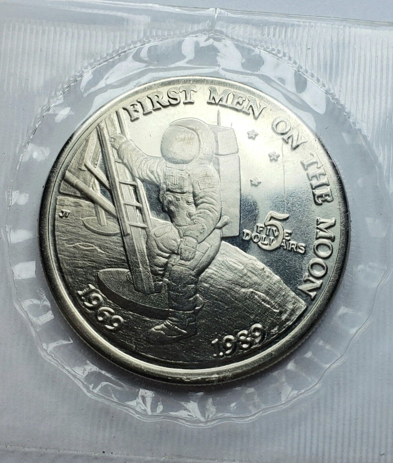 1989 MARSHALL ISLANDS 20 TH ANNIVERSARY FIRST MEN ON THE MOON FIVE DOLLAR COIN