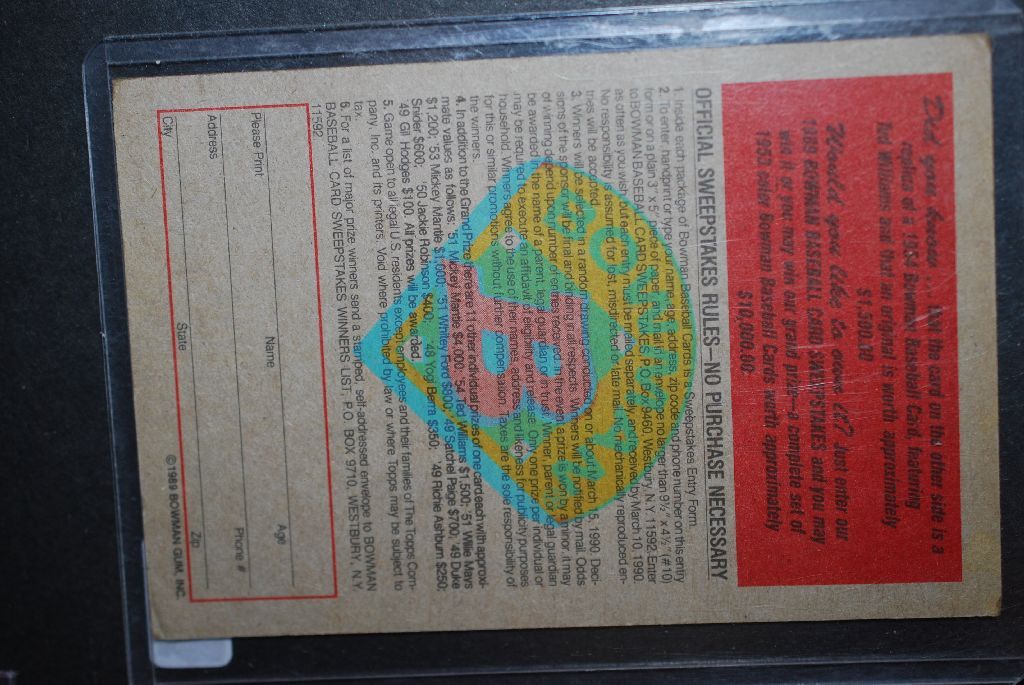 1989 MLB Ted Williams Boston Red Sox Baseball Trading Card; EST. $5-10