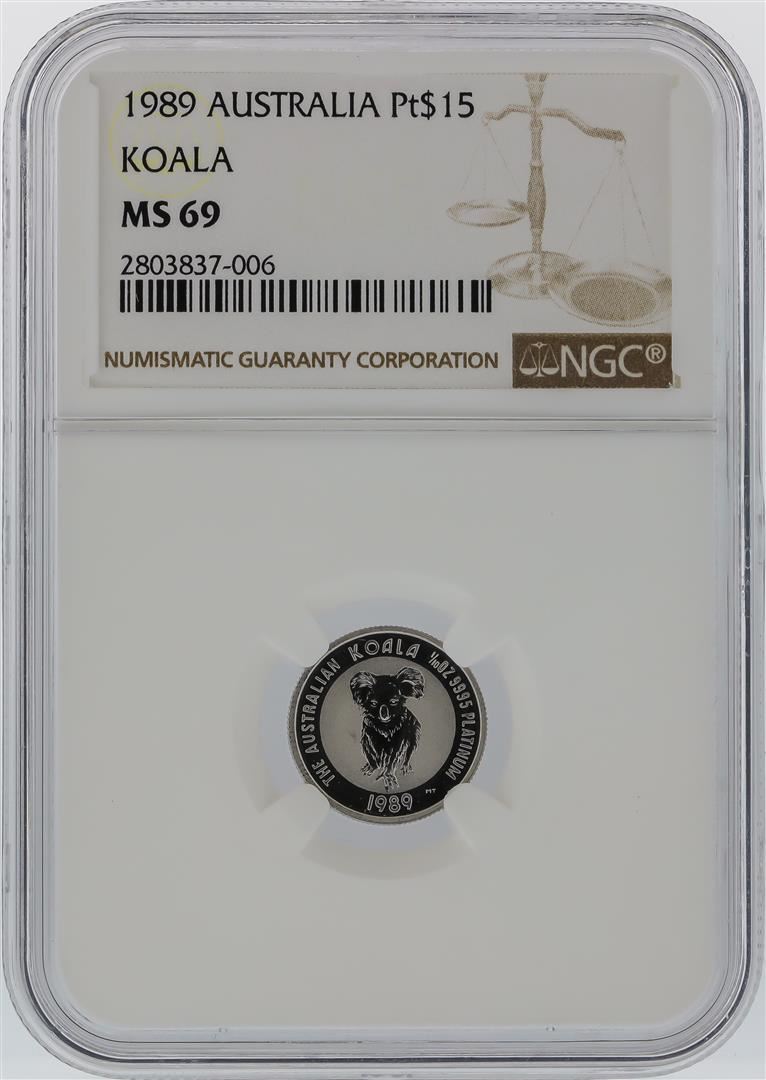 One 1989 NGC MS69 Australia $15 Koala Platinum Coin. NGC Certified.