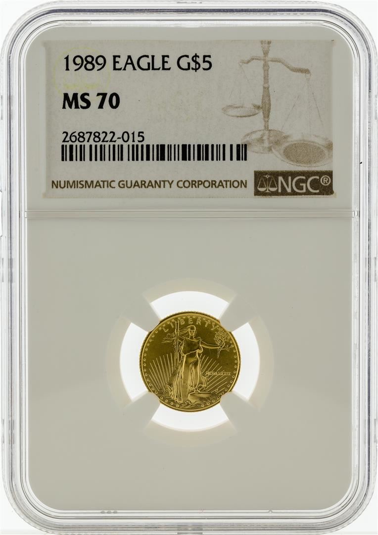 One 1989 NGC MS70 $5 Eagle Gold Coin. NGC Certified.