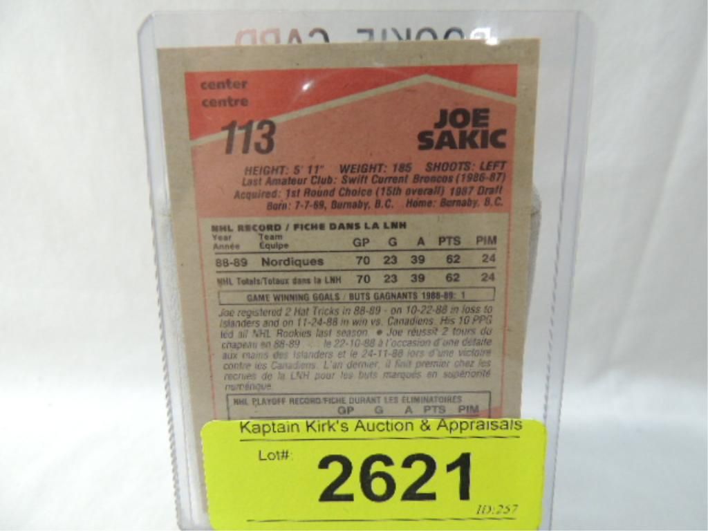 1989 O-PEE-CHEE JOE SAKIC ROOKIE HOCKEY PLAYER TRADING CARD. #113 AS SHOWN SEE PHOTO FOR MORE DETAILS.
