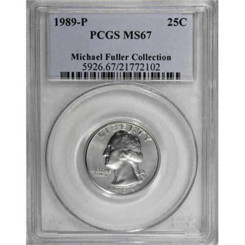 <B>1989-P 25C MS67 PCGS.</B></I> Fully brilliant with razor-sharp striking details and highly reflective fields. Careful inspection fails to reveal any noteworthy marks on either side of the coin. Population: 9 in 67, 0 finer (10/07). <BR><I>From The Michael Fuller Collection.</B></I><BR><BR><B>Coin Engraver:</B> John Flanagan<BR><BR><b>Shipping:</b> Coins & Currency (<a target="_blank" href="http://www.heritageauctions.com/common/shipping.php">view shipping information</a>)