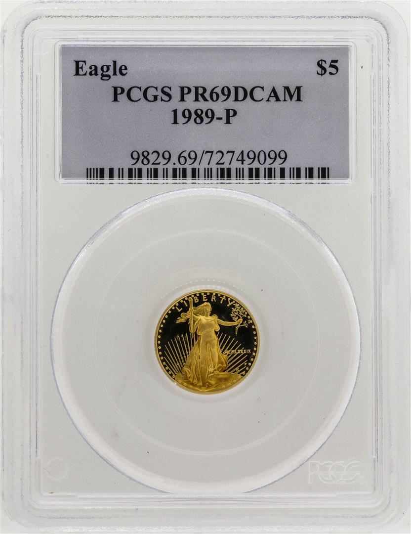 One 1989-P $5 American Gold Eagle Proof Coin PCGS PR69DCAM. PCGS Graded.