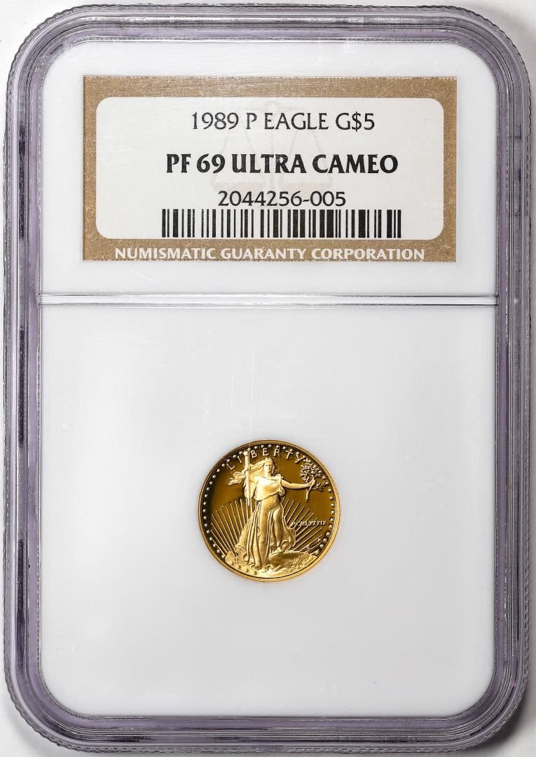 One 1989-P $5 Proof American Gold Eagle Coin NGC PF69 Ultra Cameo. NGC Certified.
