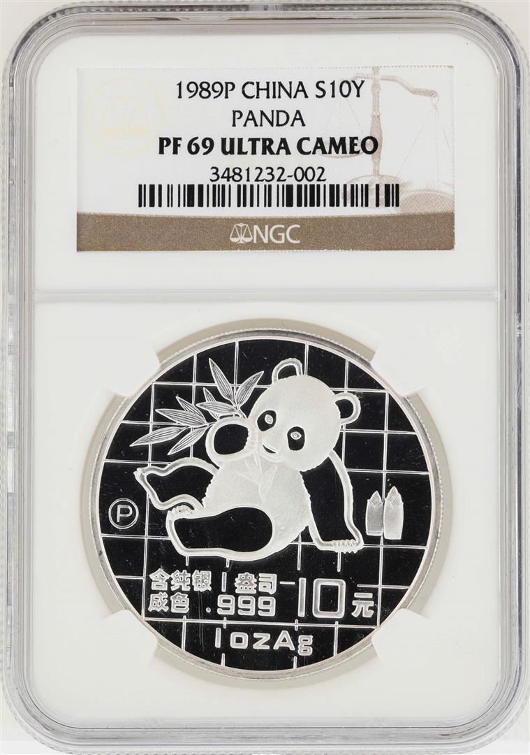One 1989-P China 10 Yuan Panda Silver Coin NGC PF69 Ultra Cameo. NGC Certified.