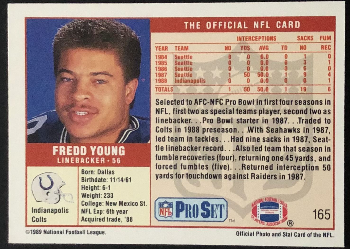 Card #165 football, NFL