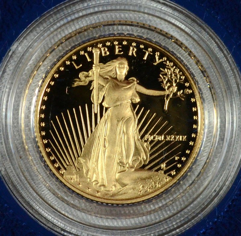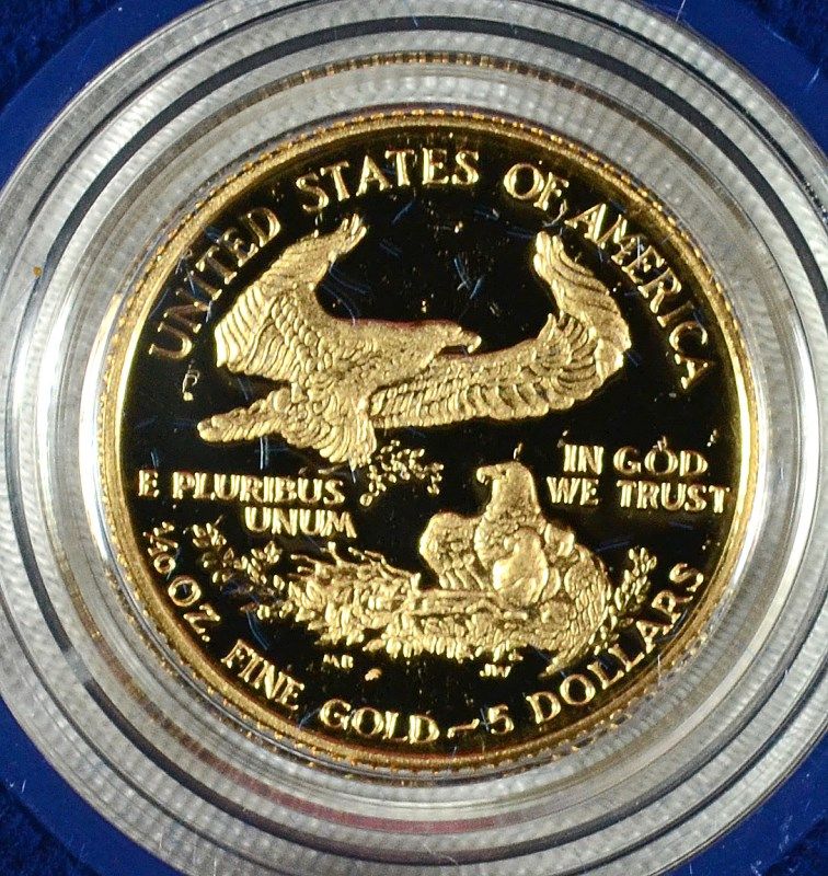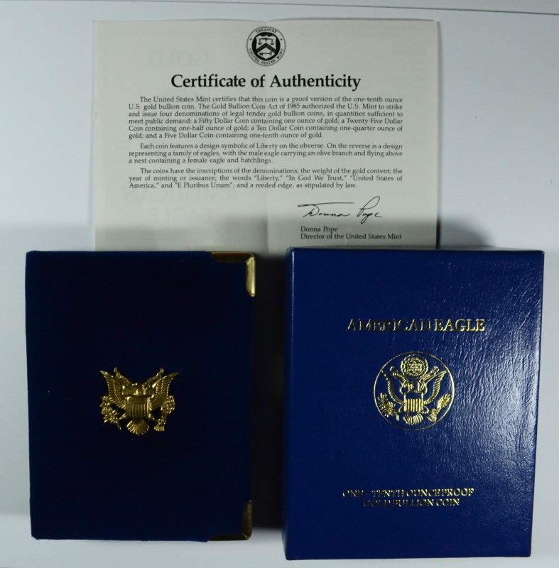 1989 PROOF $5.00 GOLD EAGLE, ORIGINAL BOX AND COA