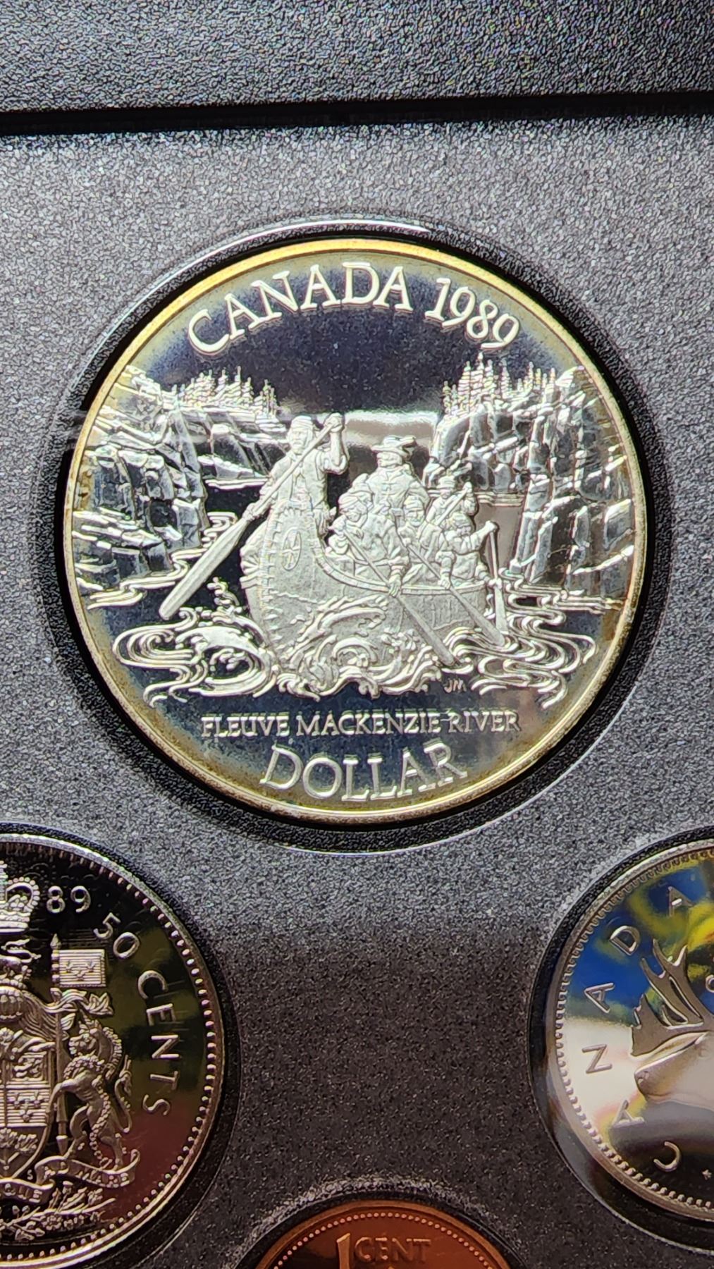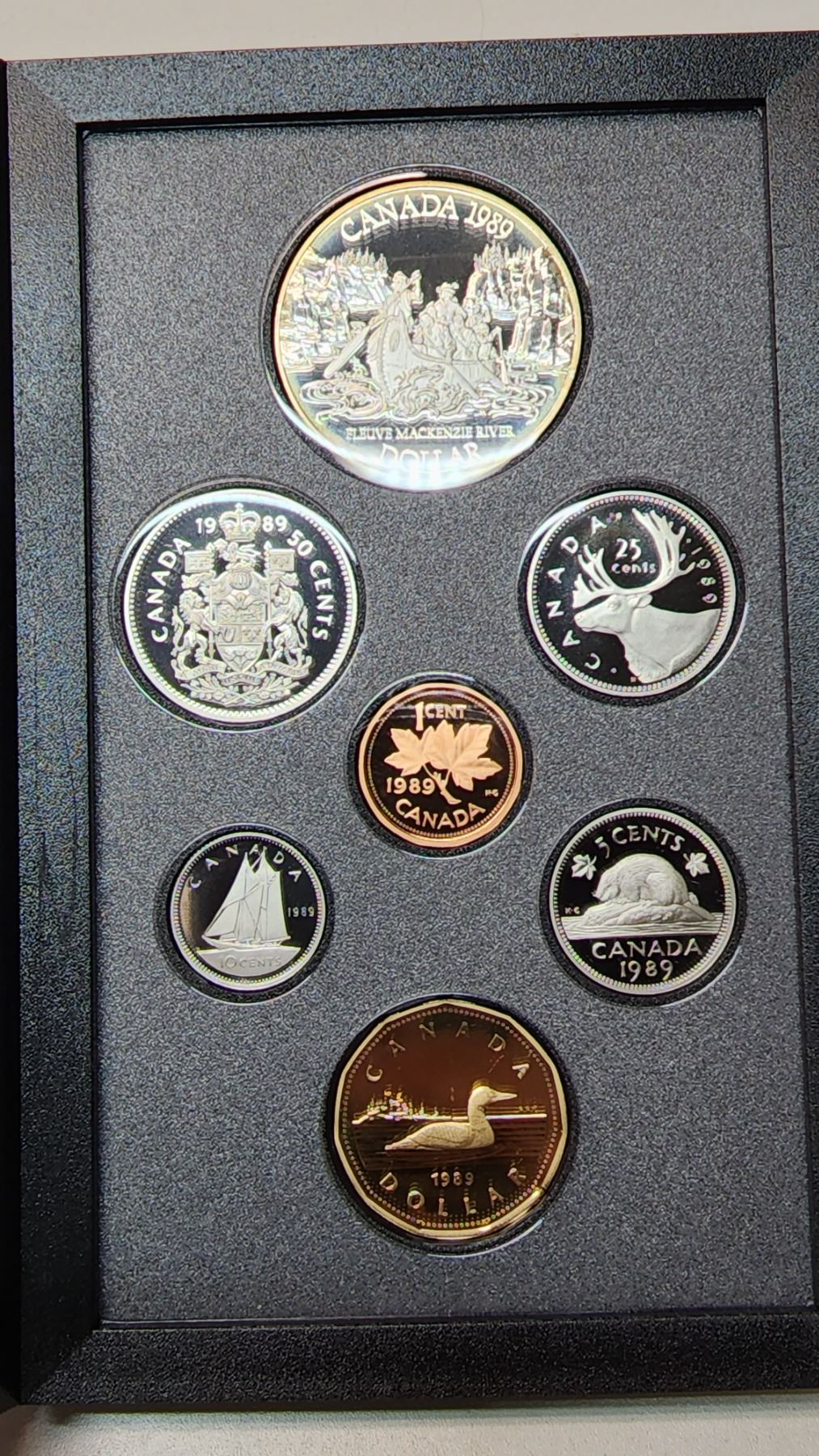 1989 Proof Set. 7-coin set includes Alexander Mackenzie Silver Dollar. All coins with Ultra Heavy Cameos. Housed in its original case of issue.