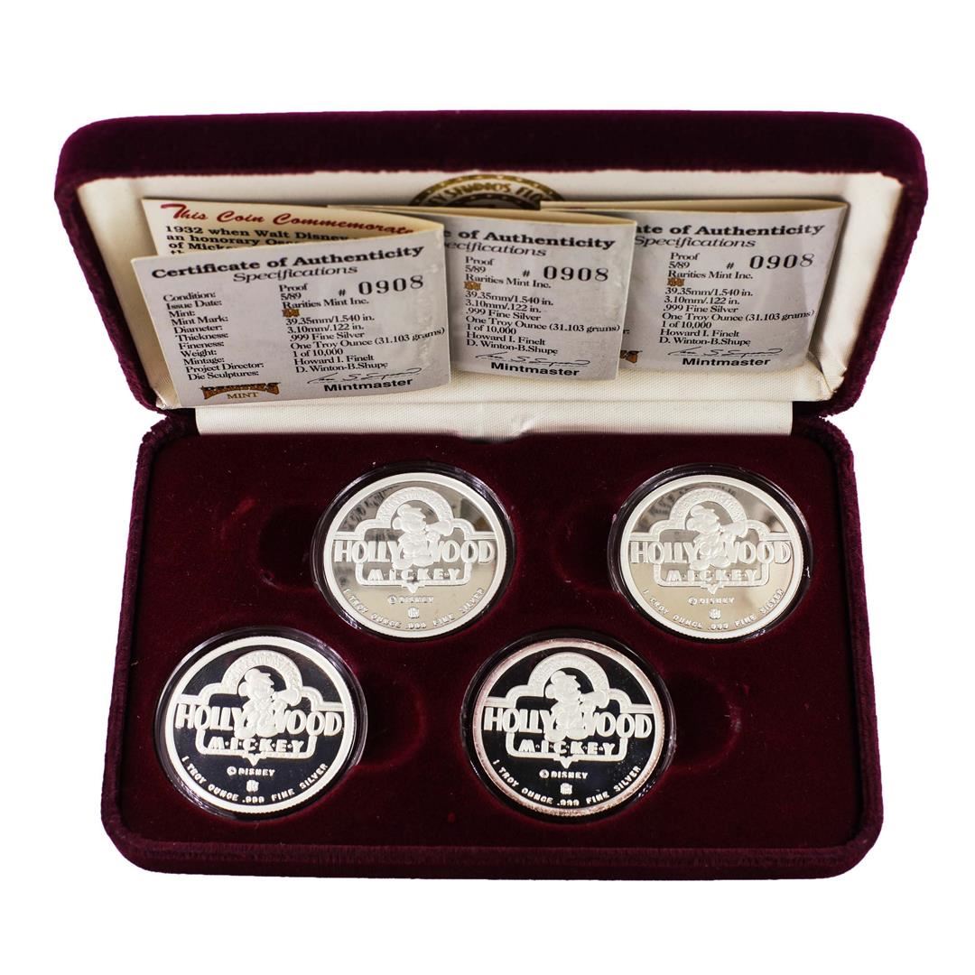 One 1989 Rarities Mint Disney Hollywood Mickey Limited Edition 4pc Silver Set w/Box & COA.