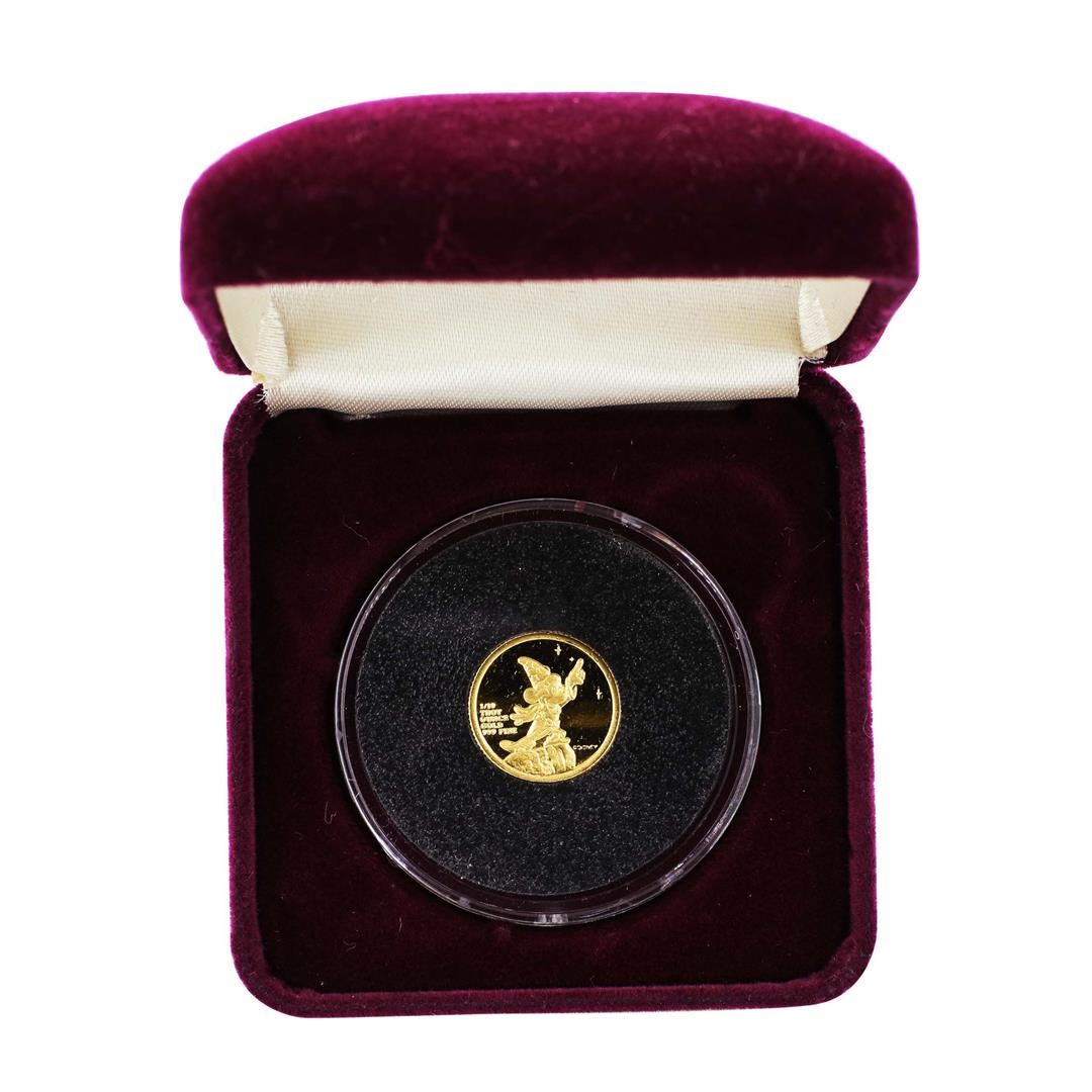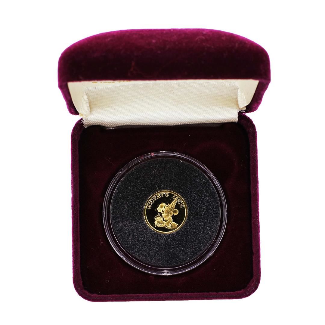 One 1989 Rarities Mint Disney Mickey Good Luck 1/10 Oz. Gold Coin w/ Box.