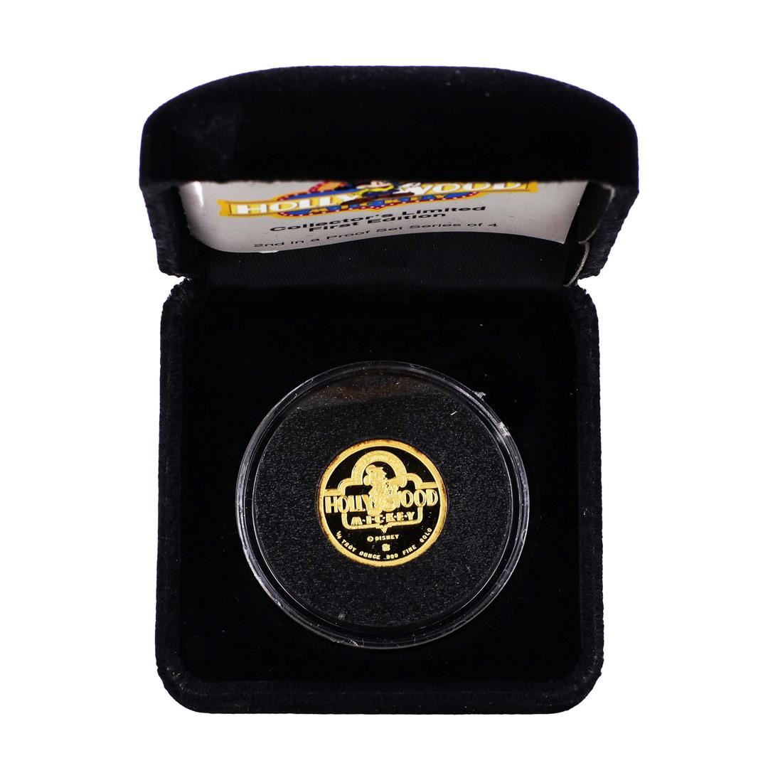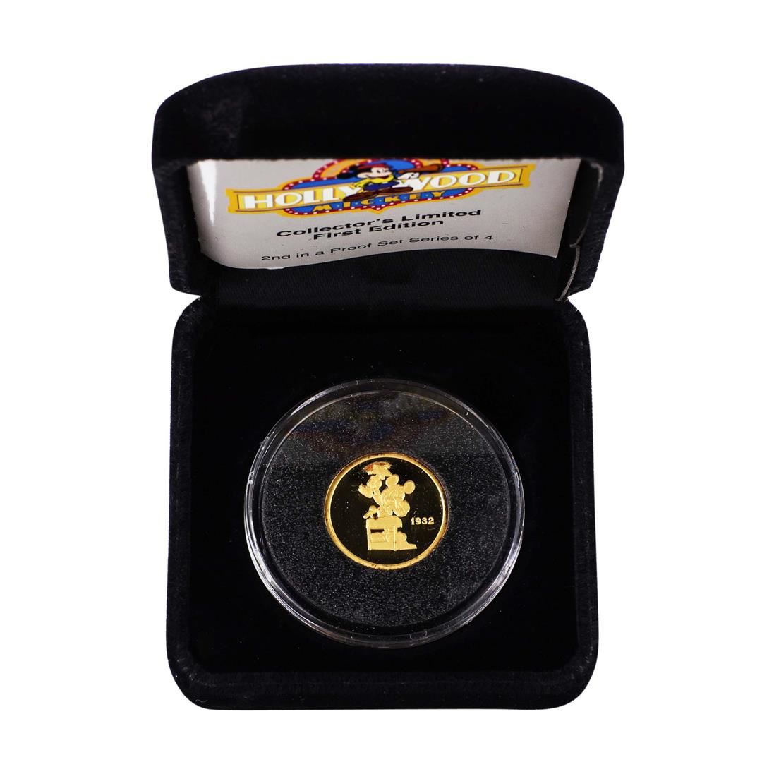 One 1989 Rarities Mint Hollywood Mickey 1/4 Oz. Gold Coin w/ Box & COA.