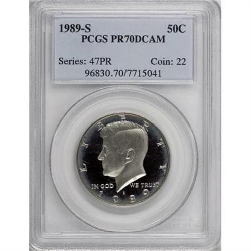 <B>1989-S 50C PR70 Deep Cameo PCGS.</B></I> PCGS Population (132/0). NGC Census: (13/0). Numismedia Wsl. Price for NGC/PCGS coin in PR70: $280. (#96830)<BR><BR><b>Shipping:</b> Coins & Currency (<a target="_blank" href="http://www.heritageauctions.com/common/shipping.php">view shipping information</a>)