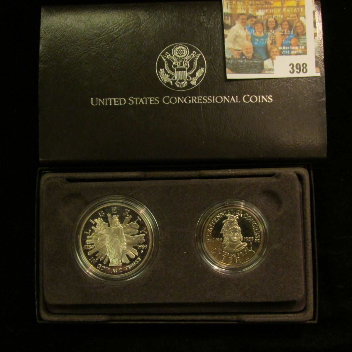 1989 S Bicentennial of Congress Two-Coin Proof Set in original case of issue. Contains the Silver Dollar & Half-Dollar.
