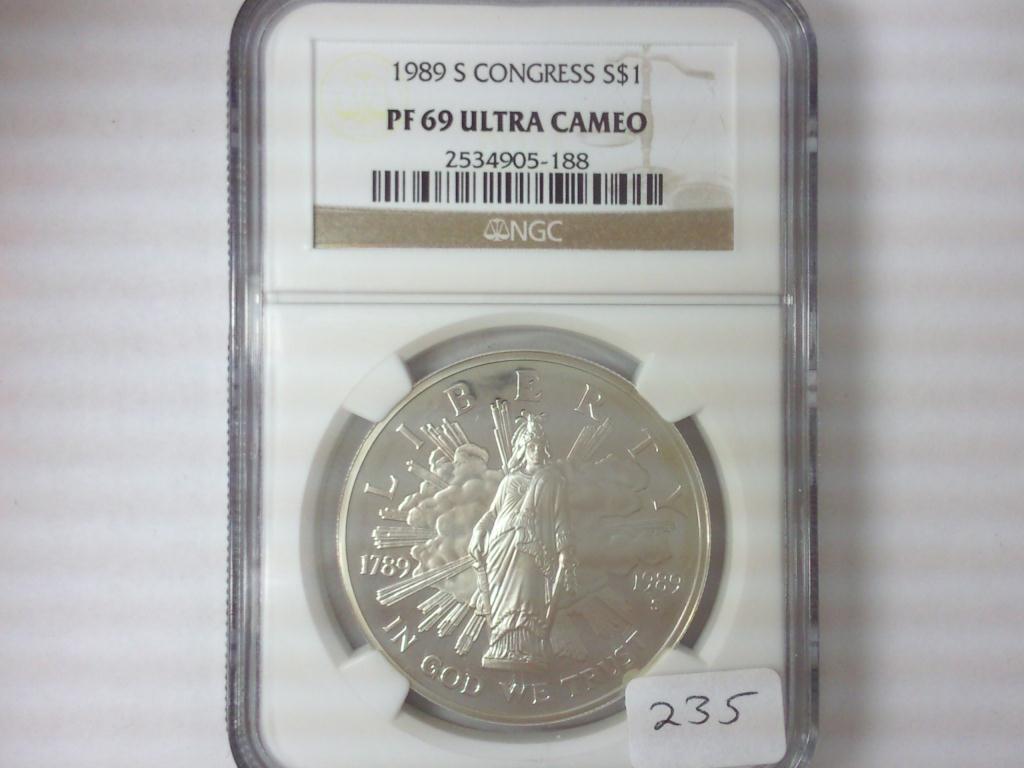 1989-S CONGRESS SILVER DOLLAR NGC PF69 ULTRA CAMEO