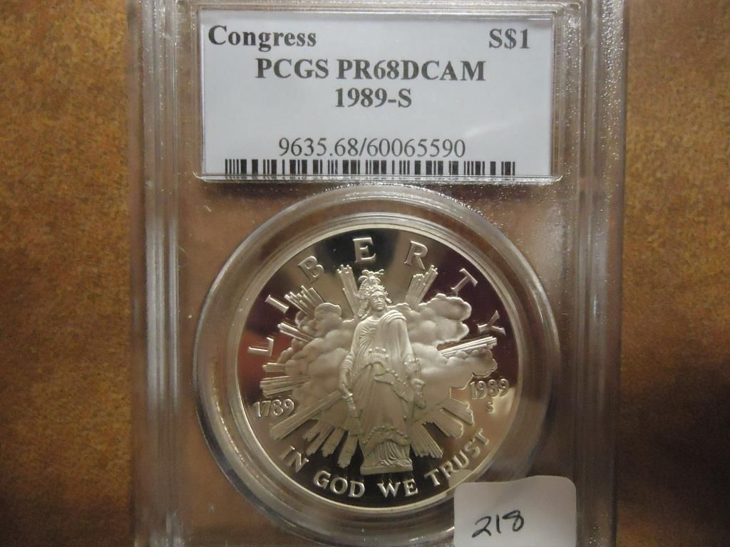 1989-S CONGRESS SILVER DOLLAR PCGS PR68 DCAM