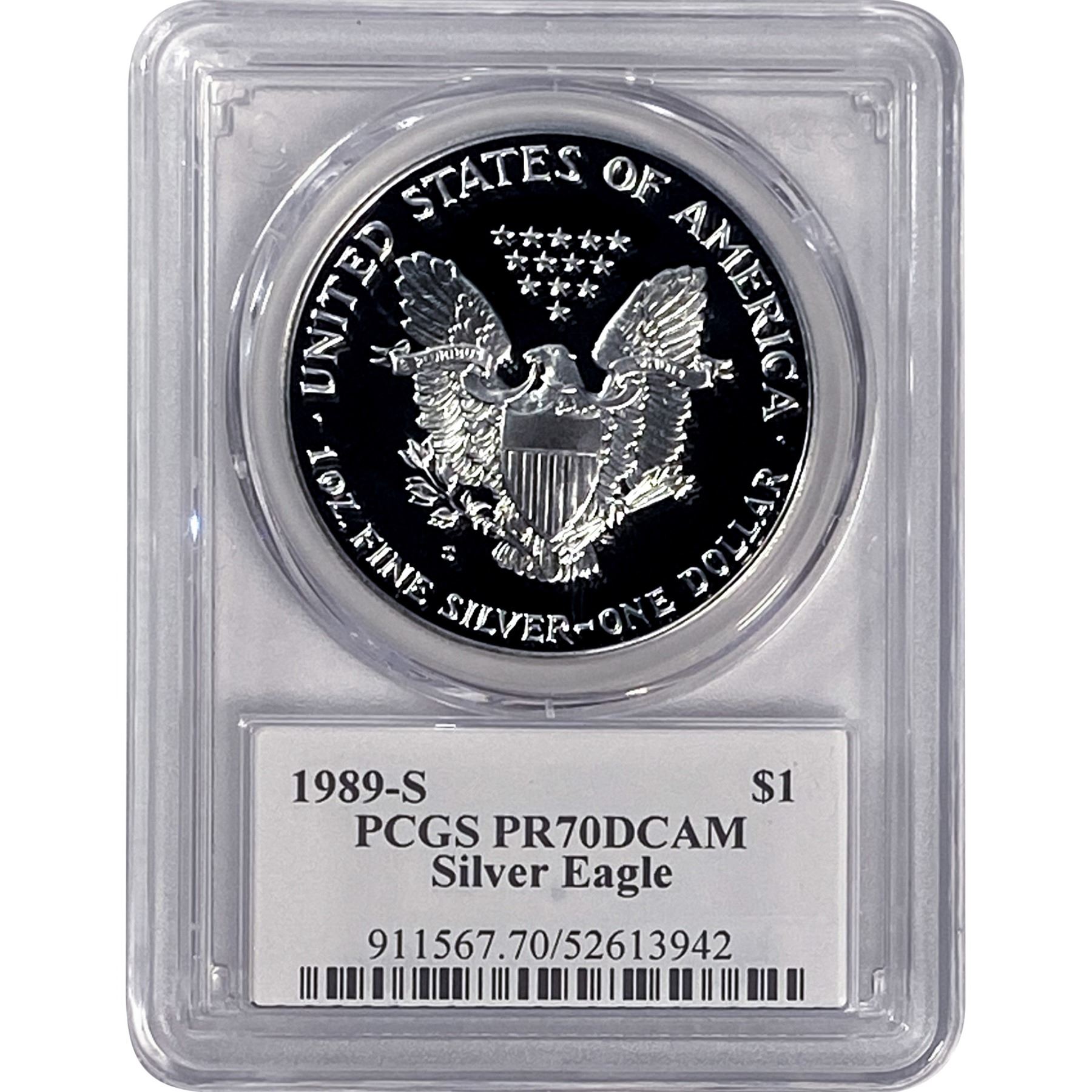 1989-S Silver Eagle PCGS PR70 DCAM Thomas D Rogers