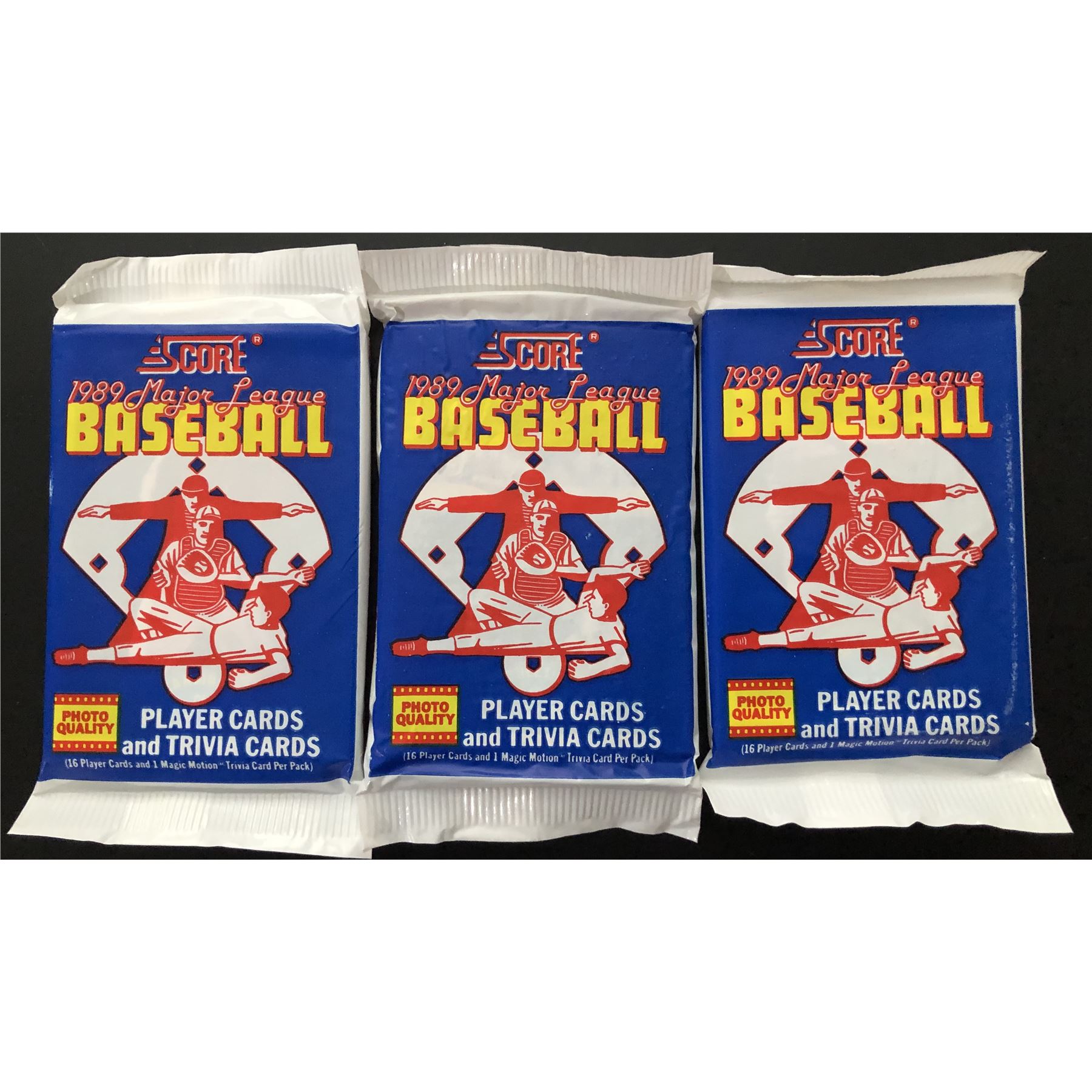 Three sealed cello packs, each containing 16 cards & Magic Motion card MLB, baseball