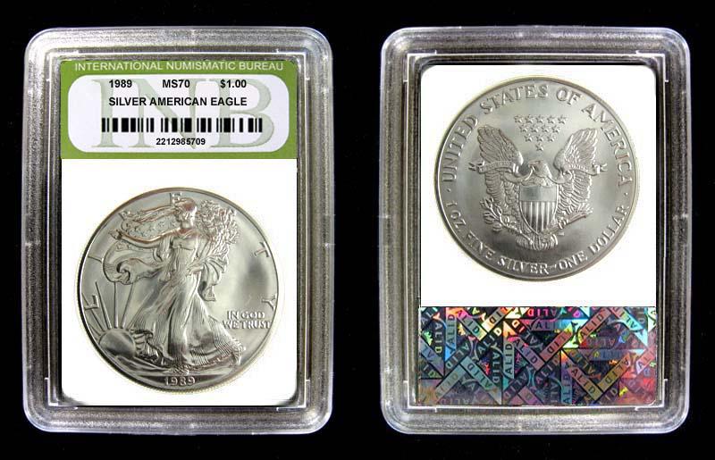 1989 SLABBED SILVER AMERICAN EAGLE HIGHEST GRADE INB GRADED MS70 - You may not receive the exact coin shown, but you will receive one of the same or better quality.