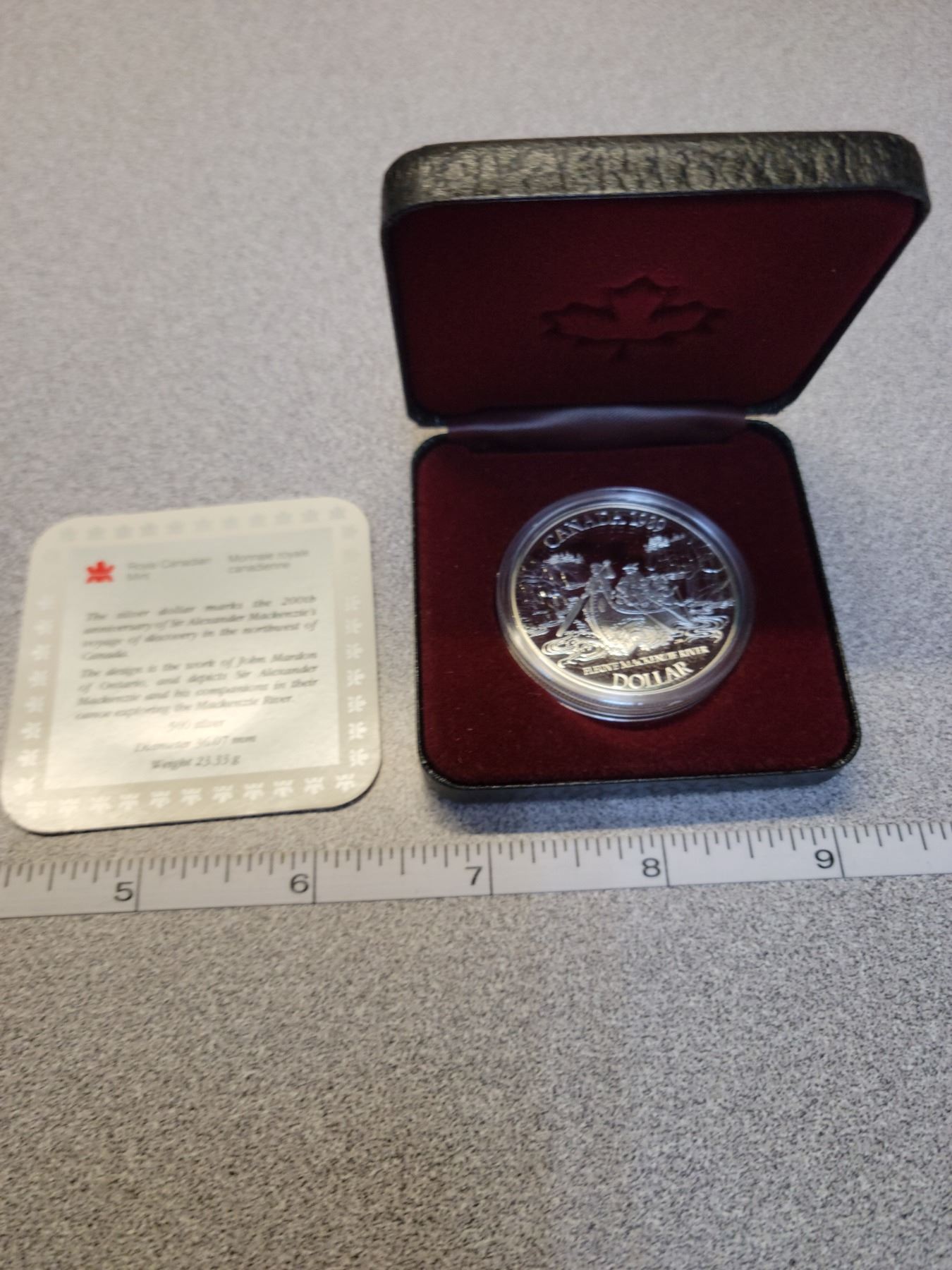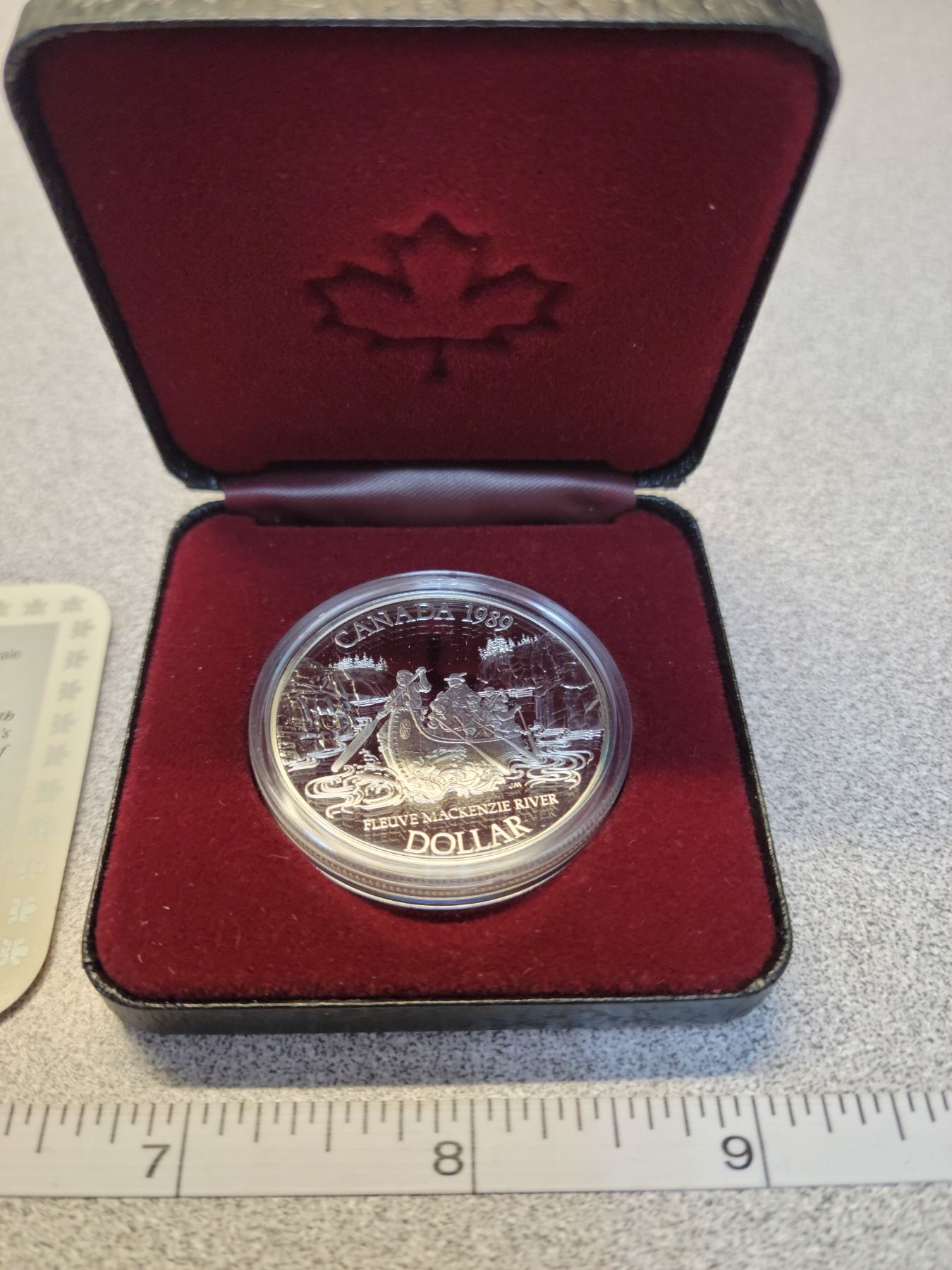 1989 Silver Dollar commemorating the 200th Anniversary of Alexander MacKenzie’s voyage to the Arctic Ocean in 1789. Proof. In case of issue.
