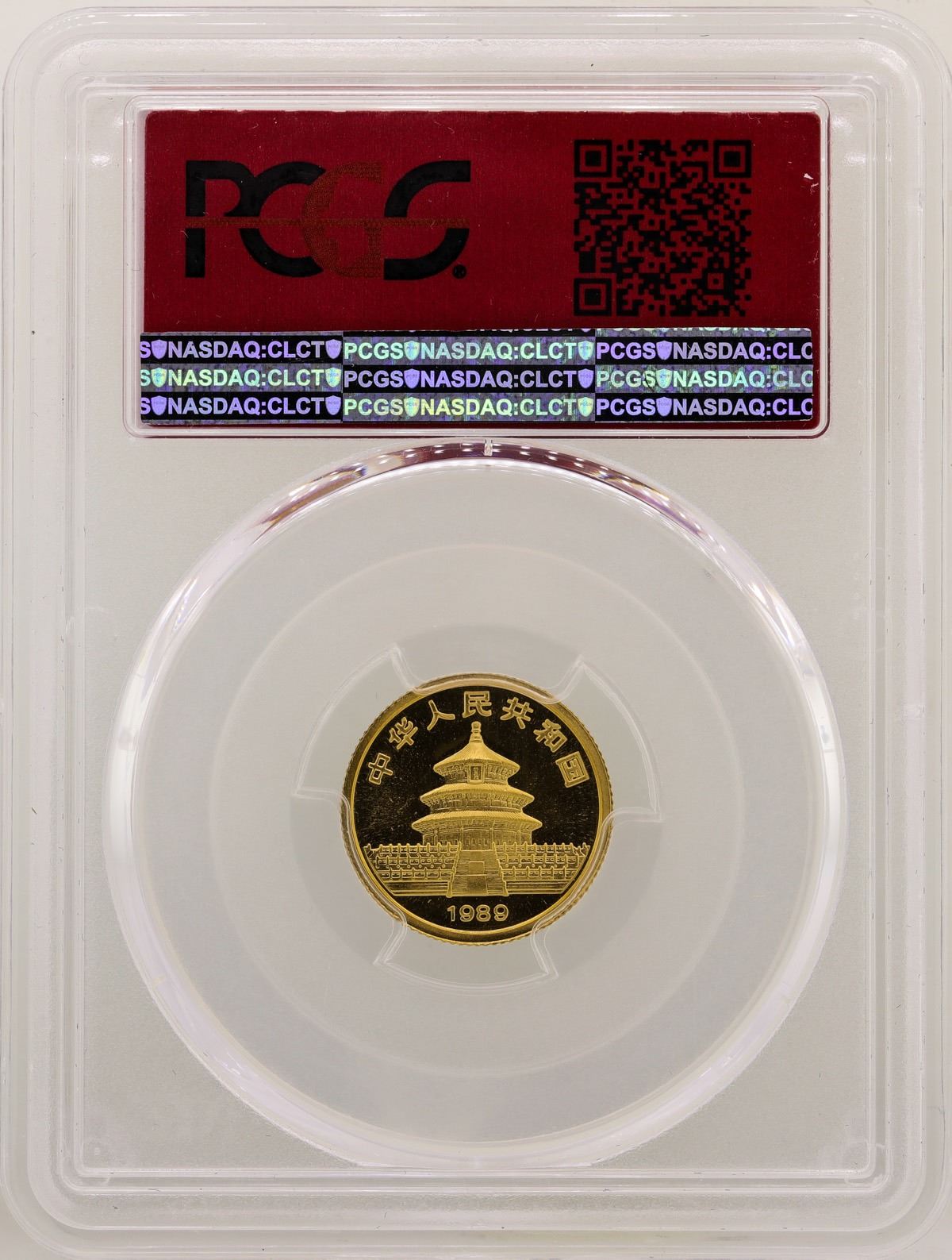 One 1989 Small Date China 10 Yuan Panda Gold Coin PCGS MS69.
